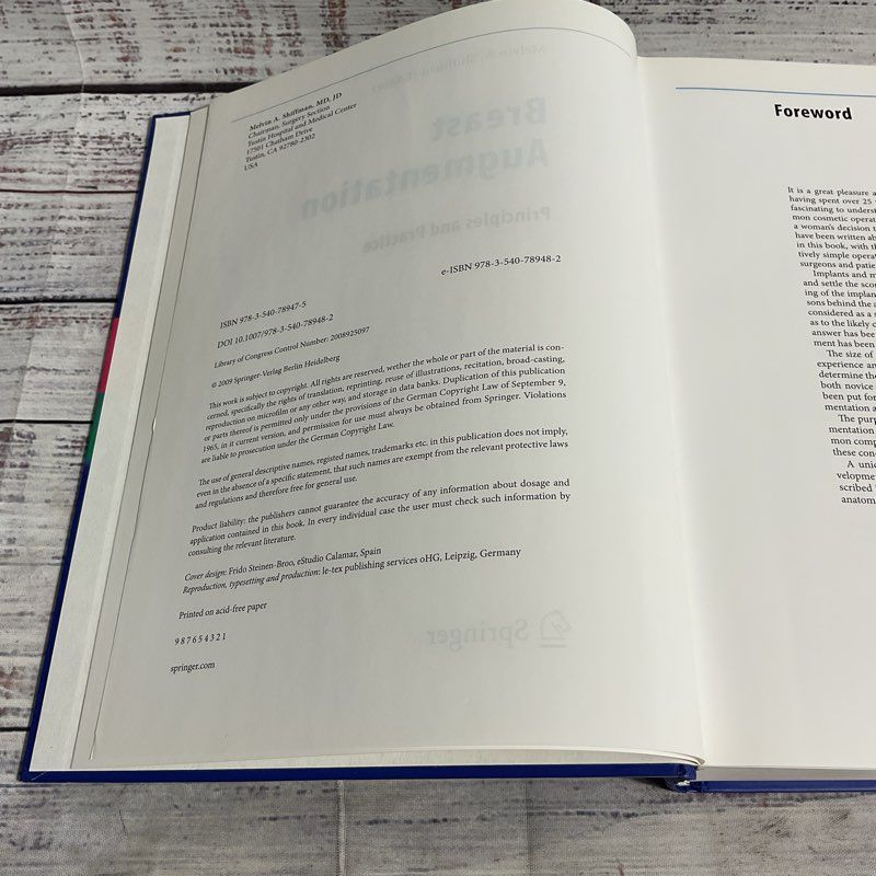 Breast Augmentation Principles & Practice Melvin A. Shiffman Hardcover Textbook