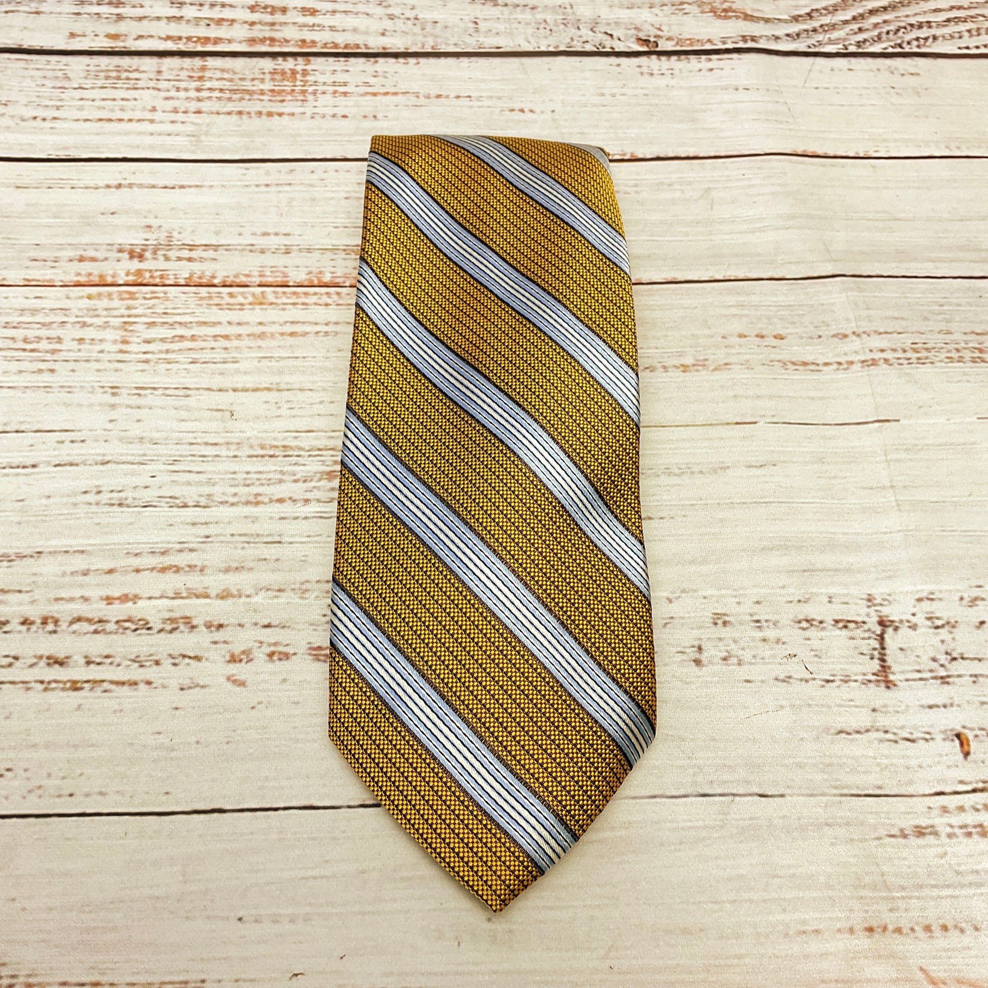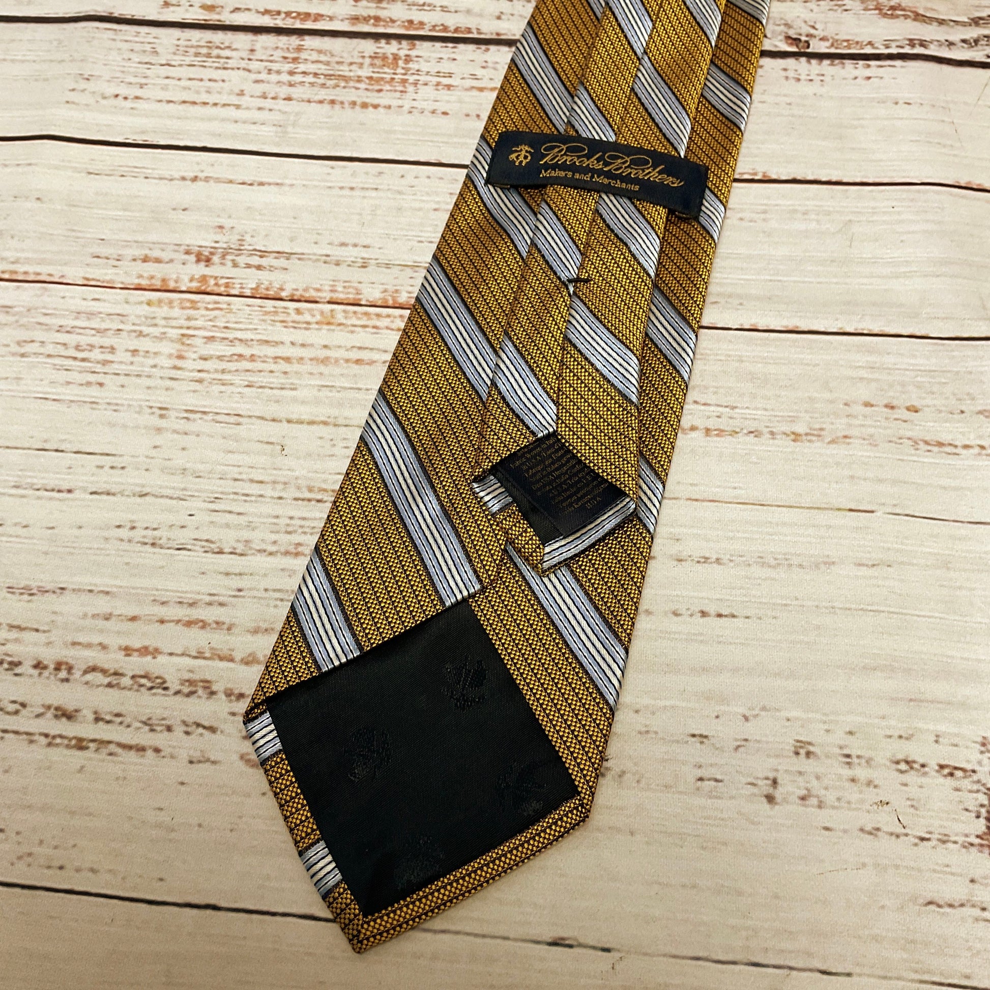 Brooks Brothers Yellow Blue Diagonal Silk Stripe Neck Tie - Size 58"