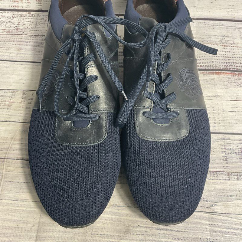 Bruno Magli Lugo Navy Embroidered Lion Leather & Mesh Sneaker Casual Shoe Men 13