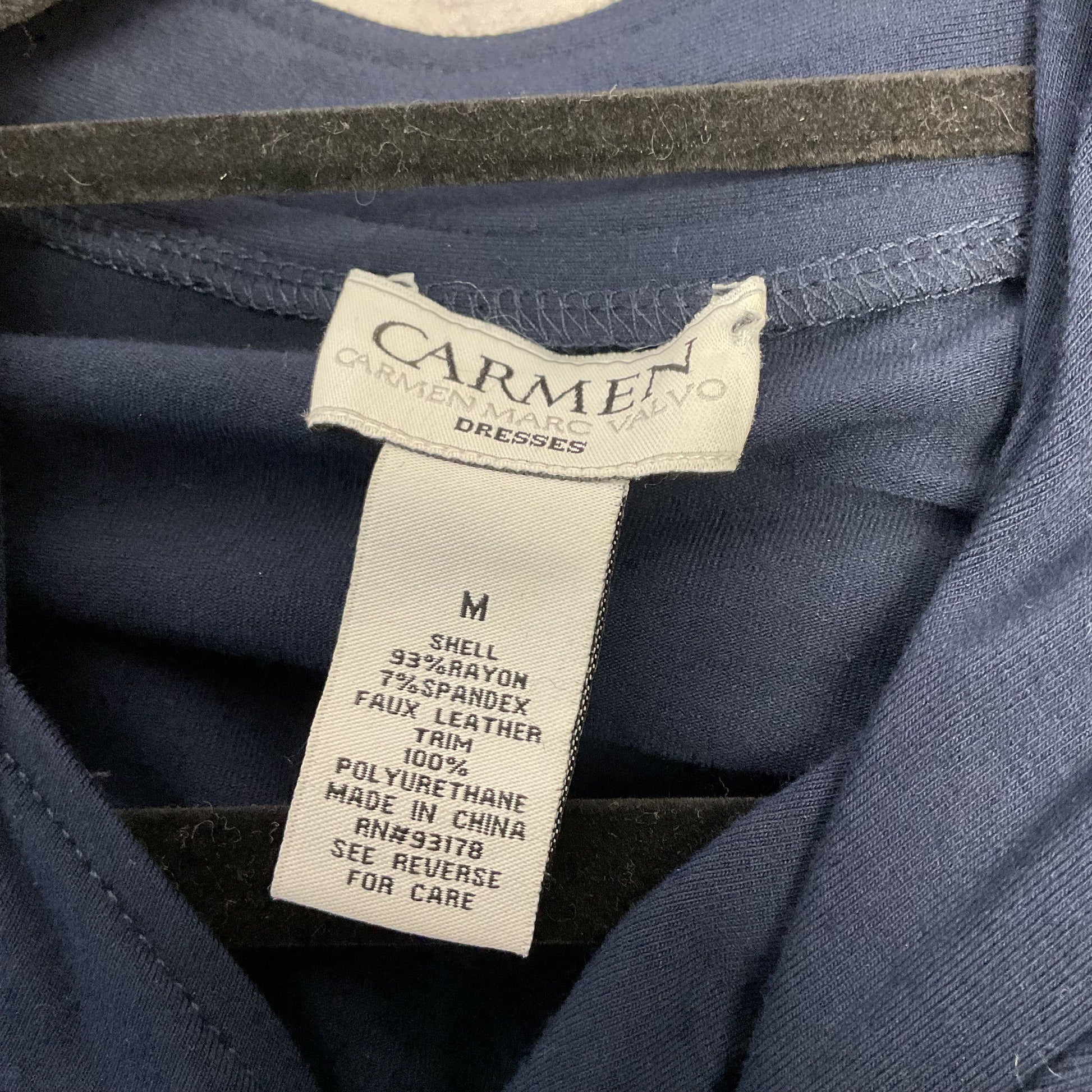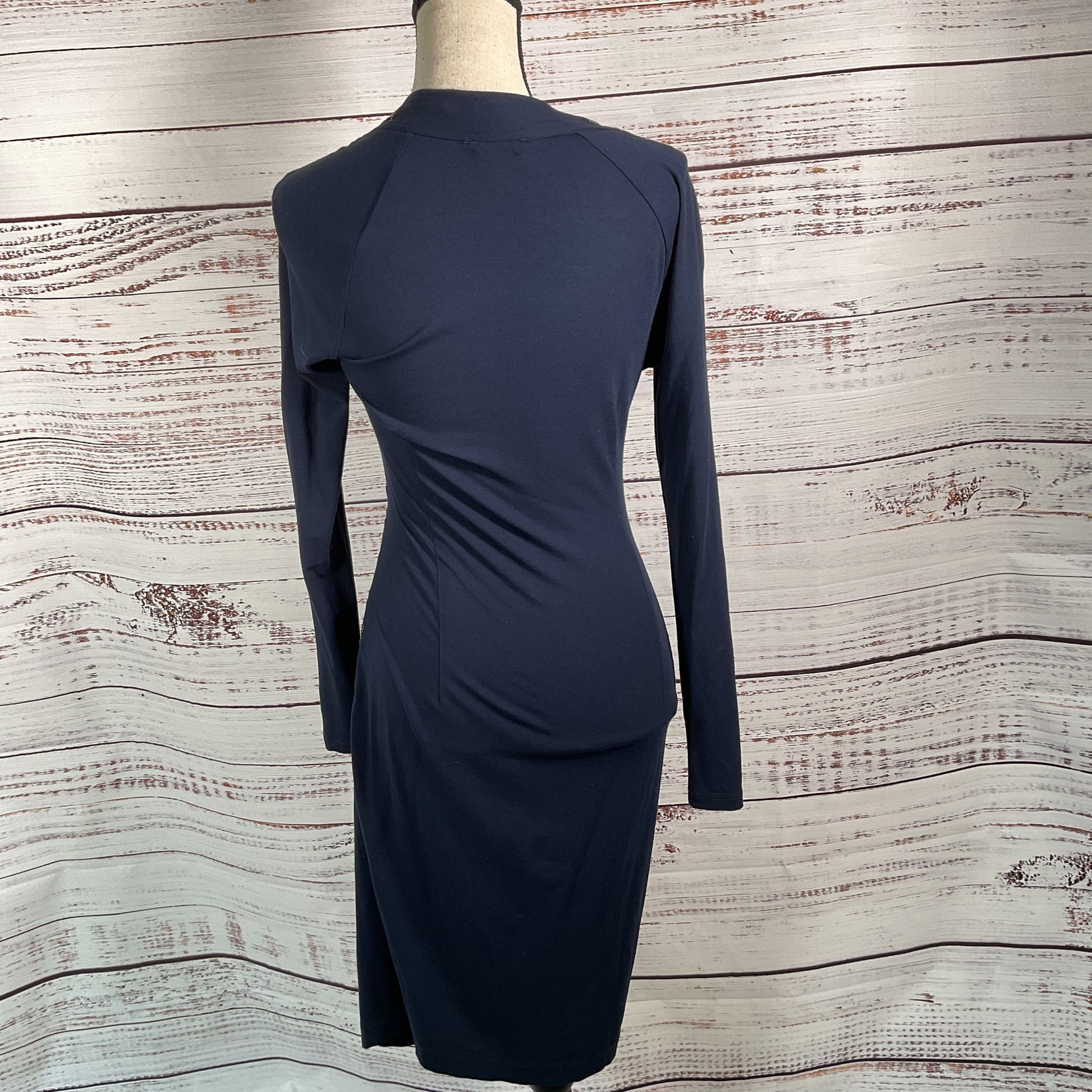 Carmen Marc Valvo Navy Blue Faux Wrap Stretch Dress - Size M