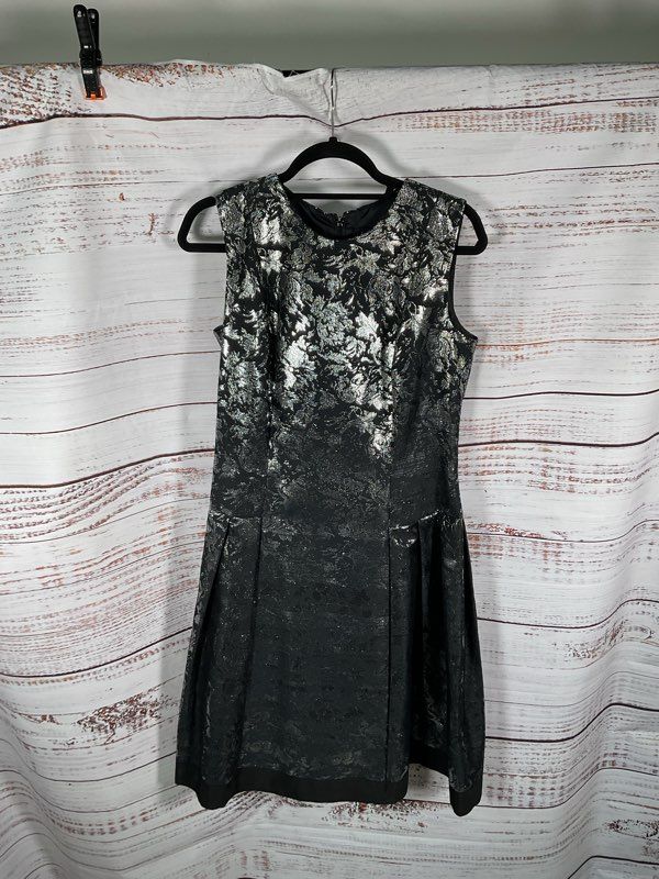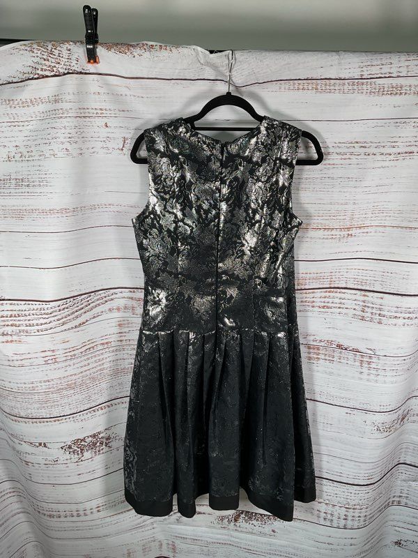 Carmen Marc Valvo Women's Black & Silver Metallic Floral Dress - Size 10