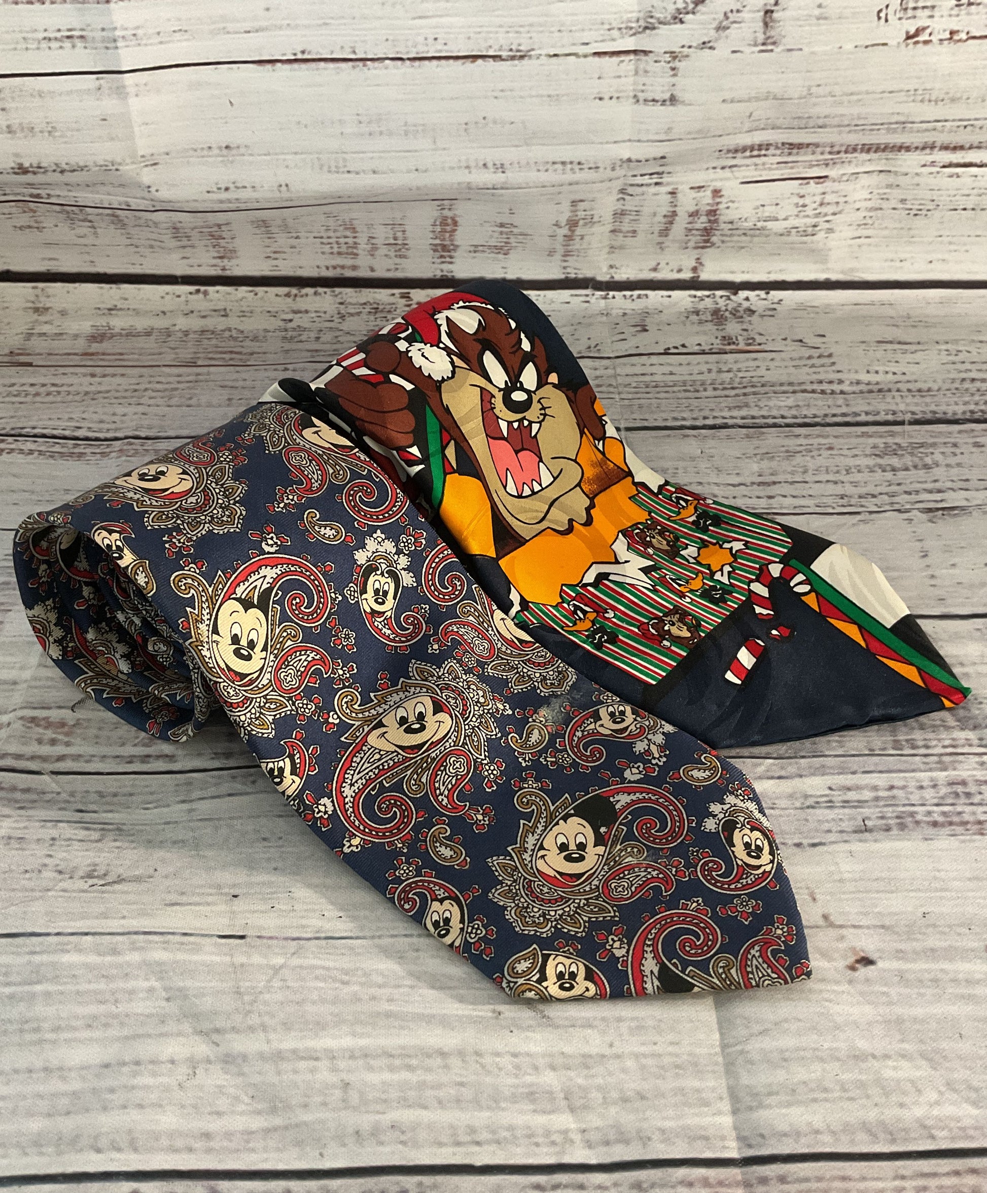 Cartoon Disney Mickey Mouse Looney Toons Lot of 2 Ties Multicolor