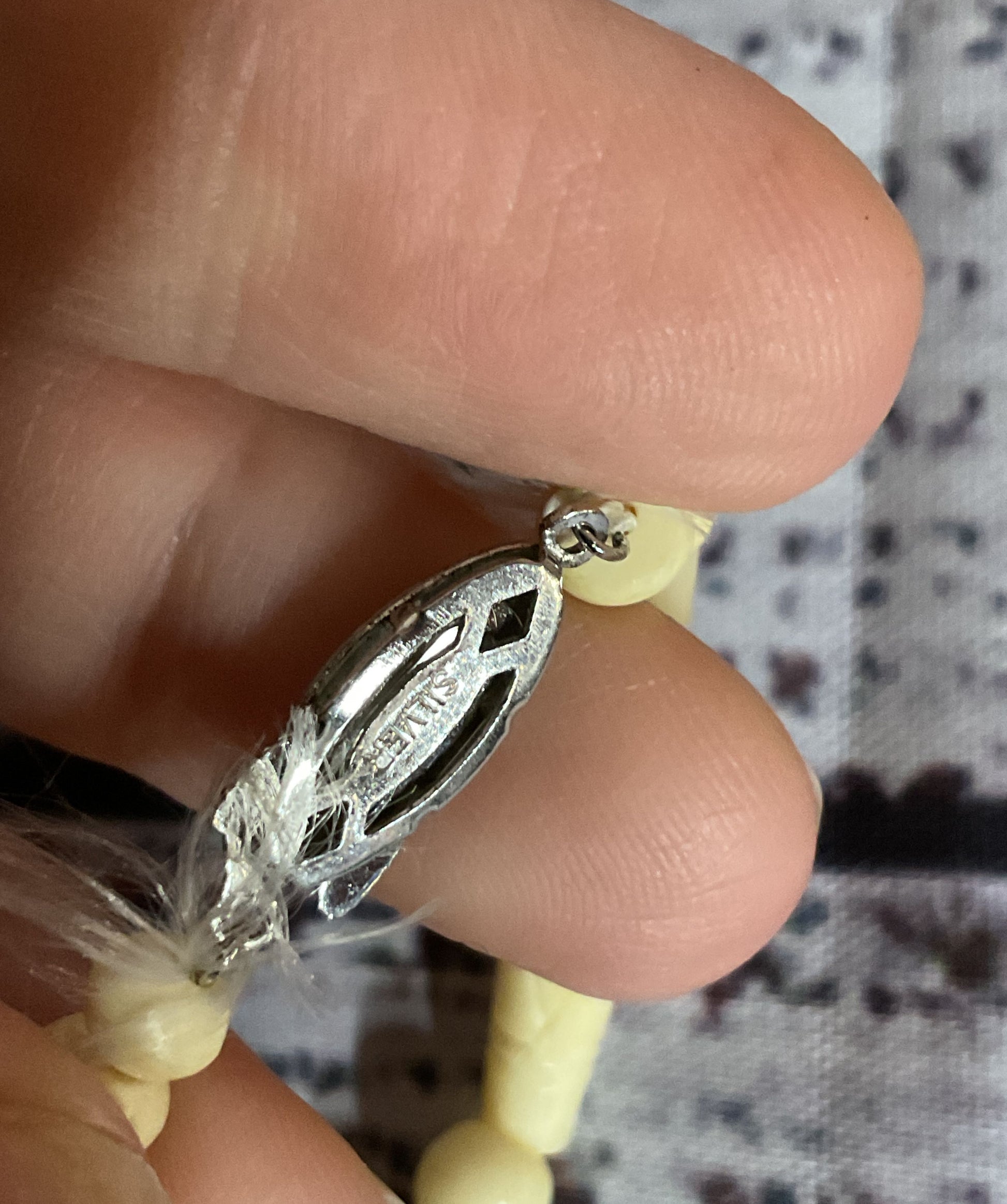 Carved Celluloid Silver Clasp Vintage Beaded Necklace
