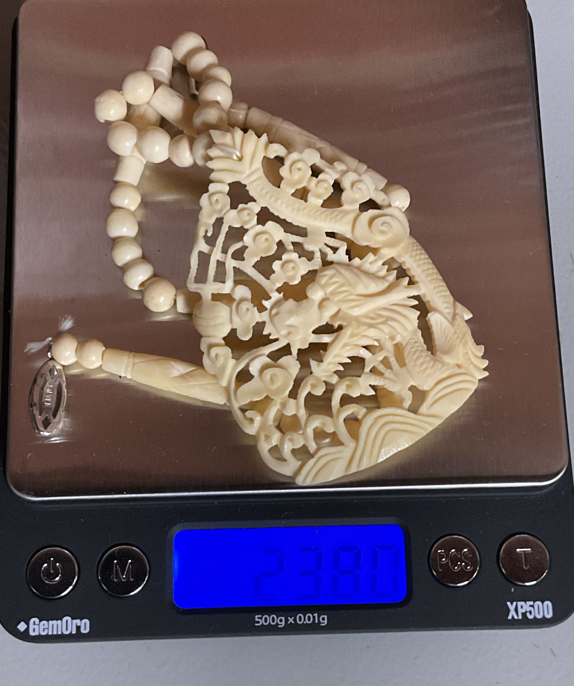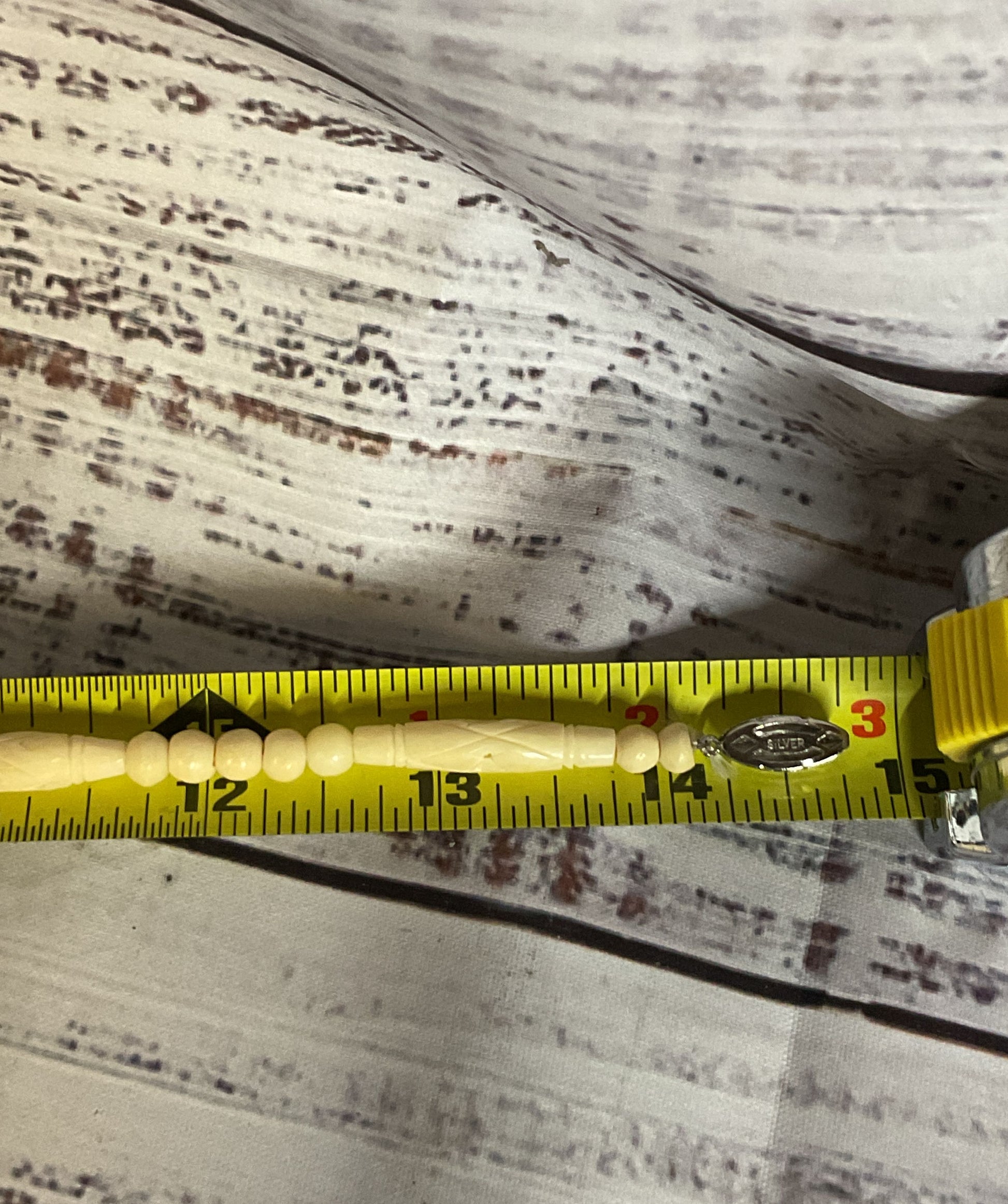 Carved Celluloid Silver Clasp Vintage Beaded Necklace 14.5" long