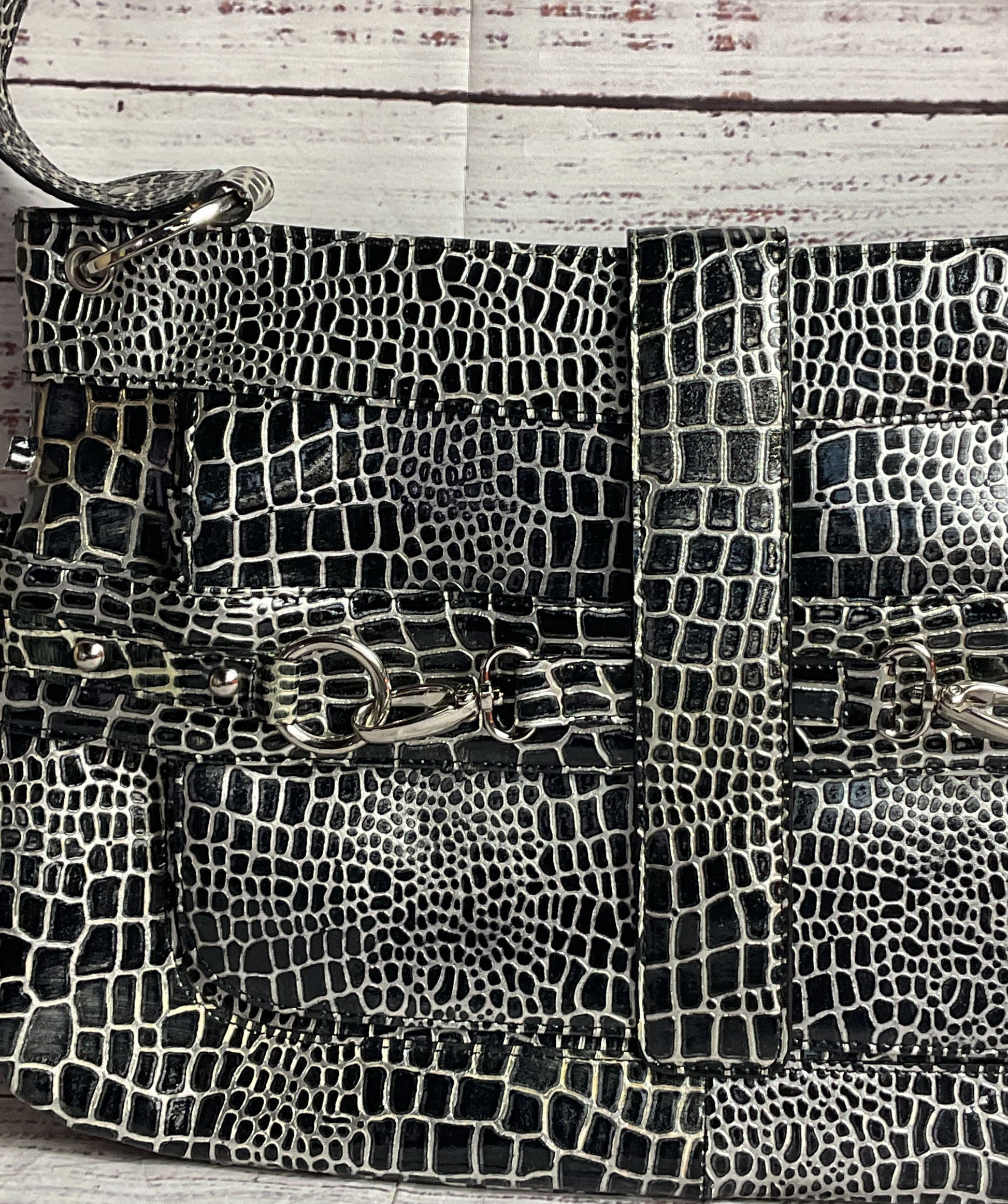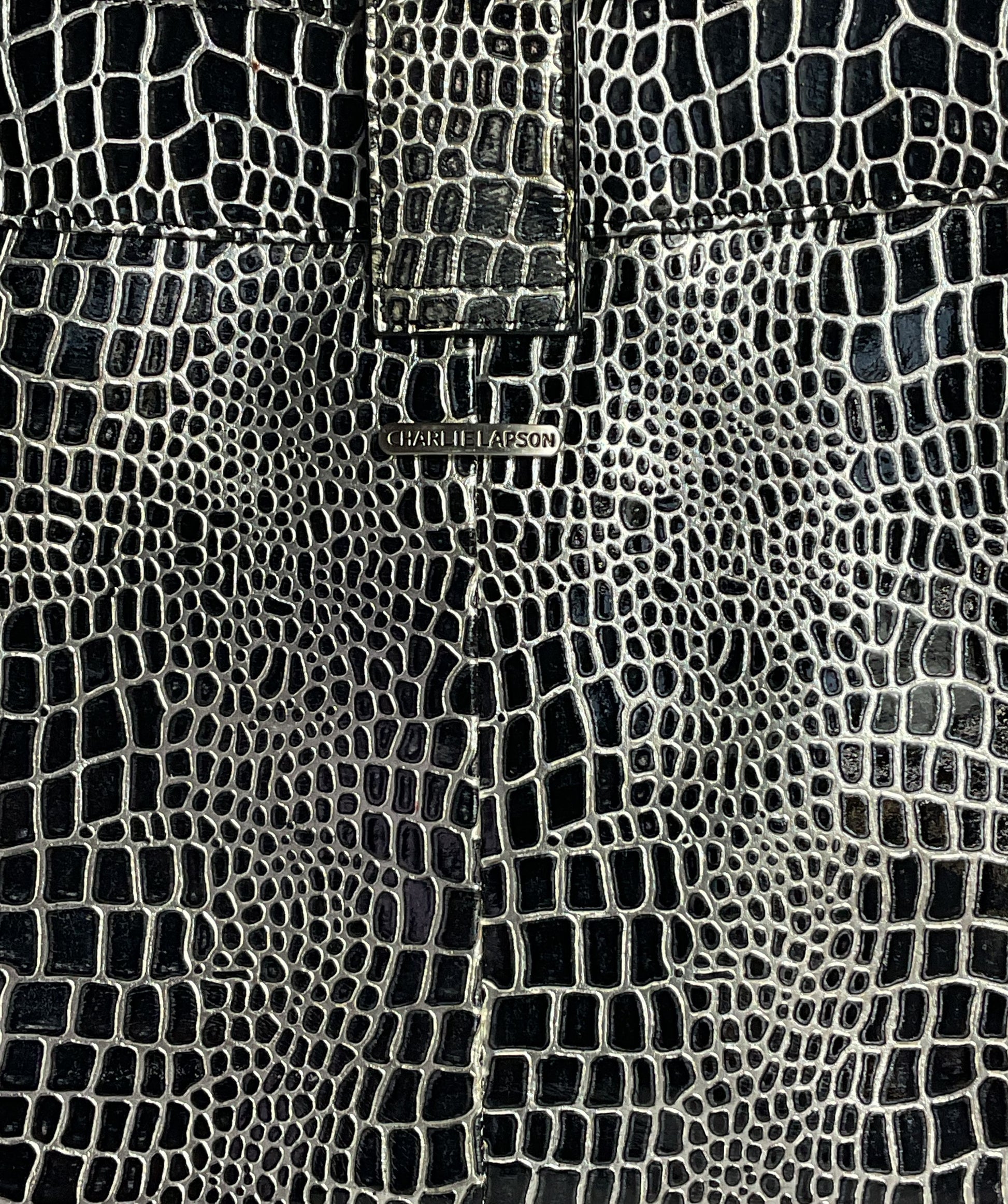 Charlie Lapson Leather Crocodile Embossed Shoulder Bag Black