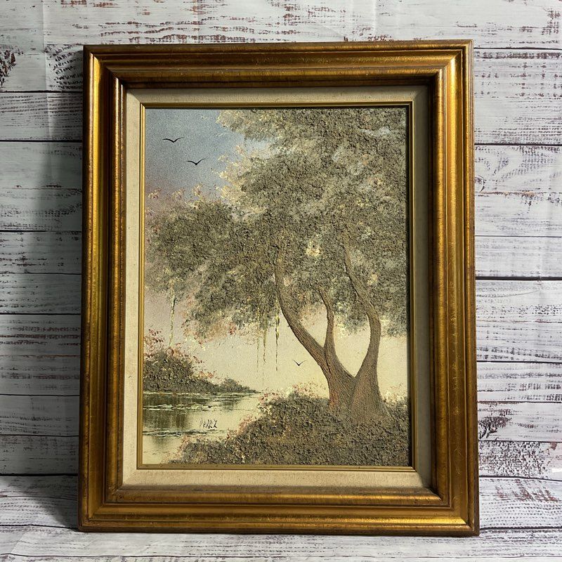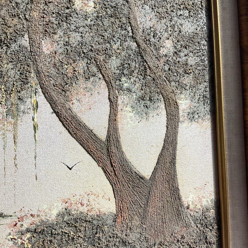 Chester Lewis Perez 3D Textured Cypress Tree Landscape Painting Framed 21x17