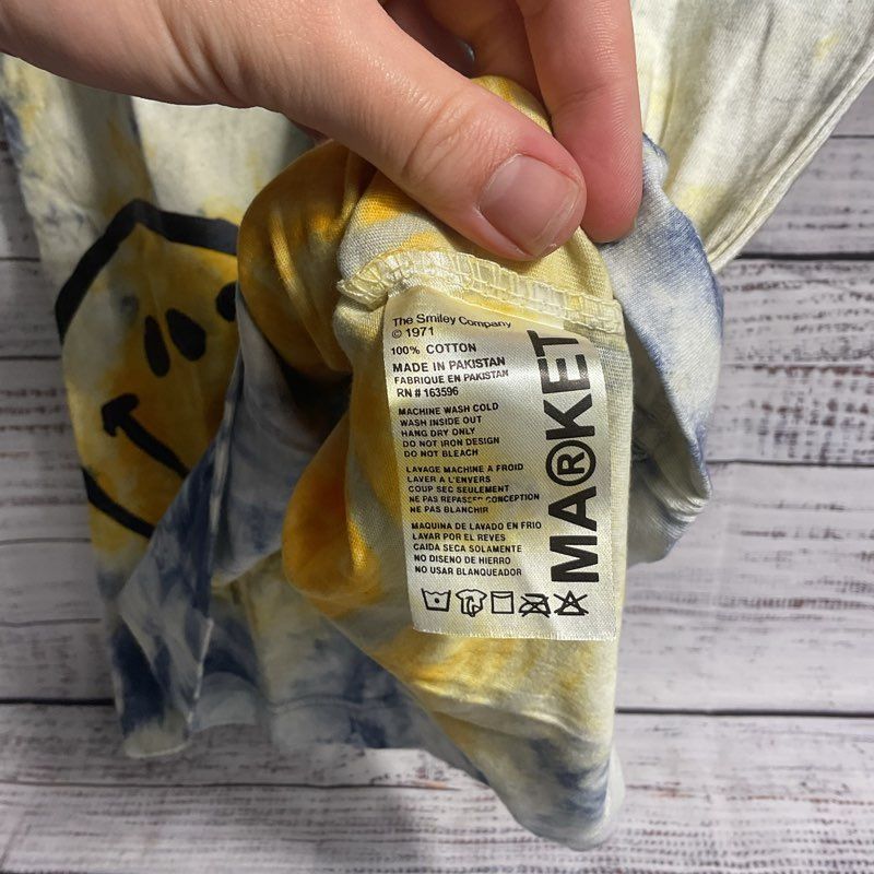 Chinatown Market Smiley Yellow Blue Sun Dye Short Sleeve Tie Dye T-shirt sz S