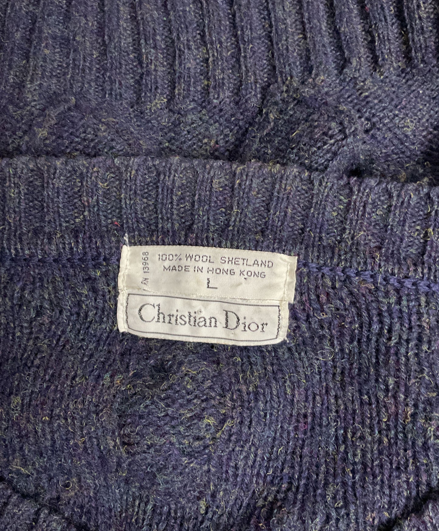 Christian Dior Navy Blue 100% Wool Shetland Sweater - Size Large *See Dscrptn*