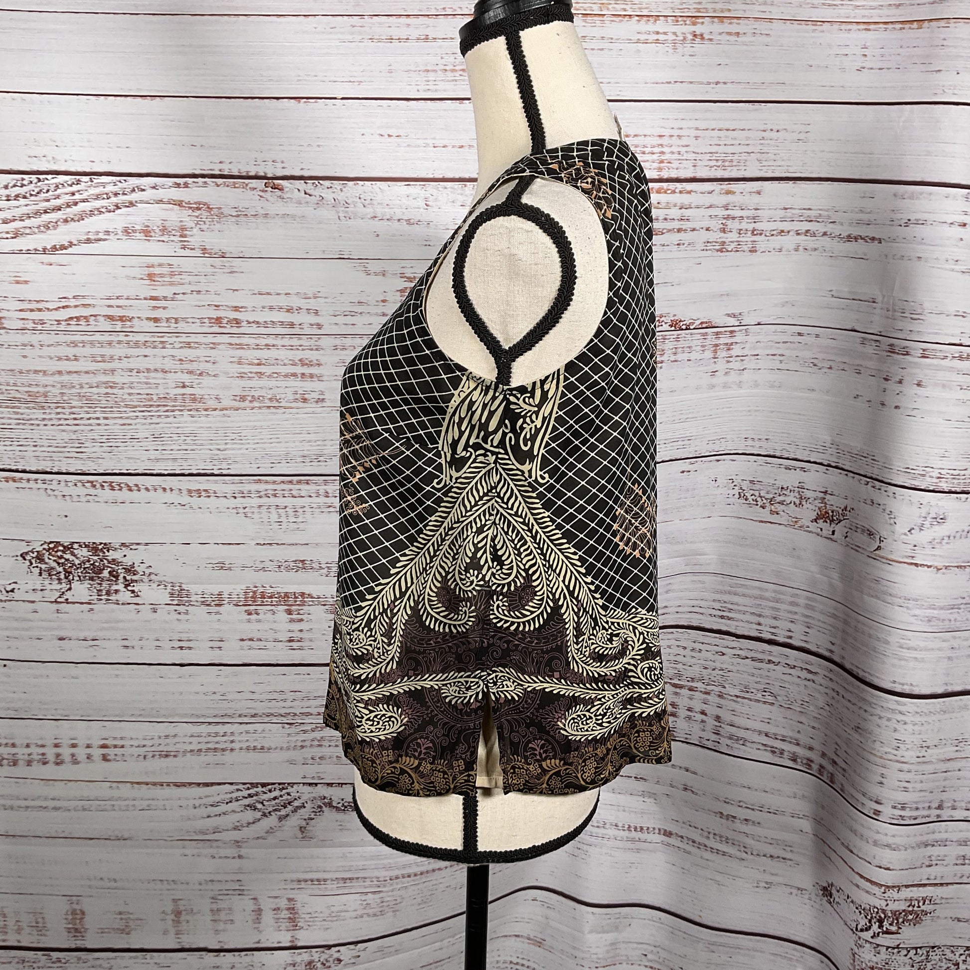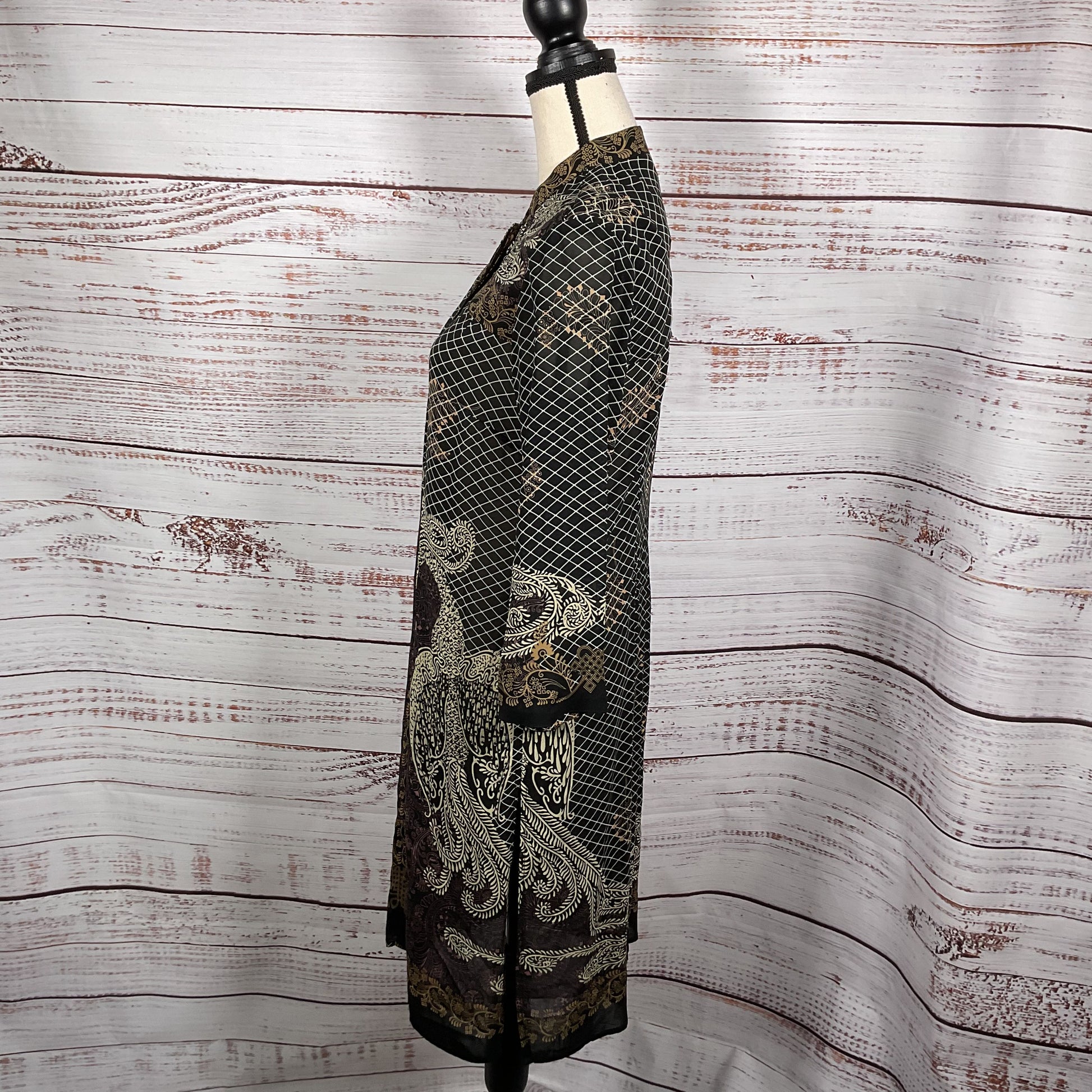 Citron Black Grid Print Silk Shirt Button Up Dress And Tank Top Set - Size XS