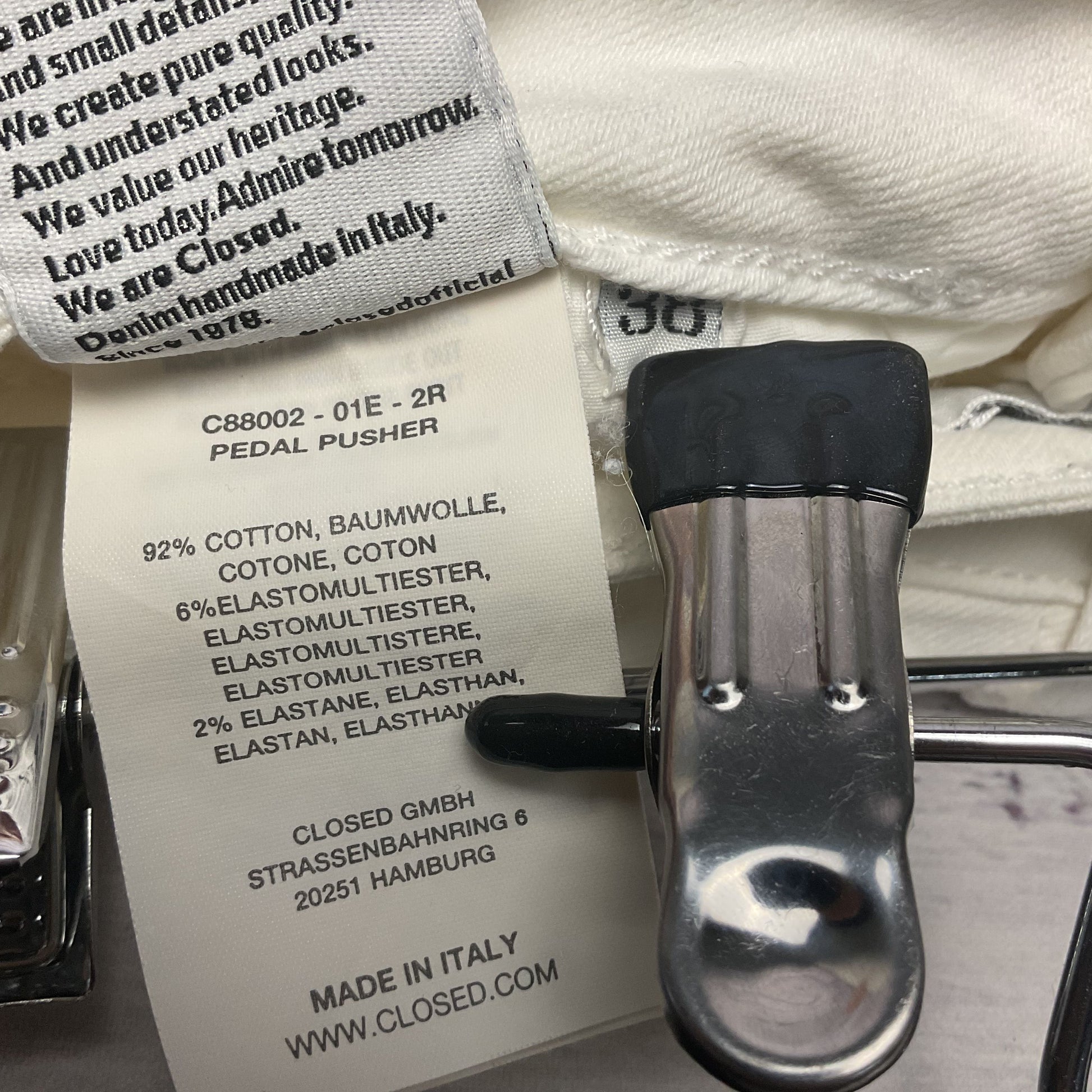 Closed White Pedal Pusher Cotton Blend Jeans Pants - Size 38