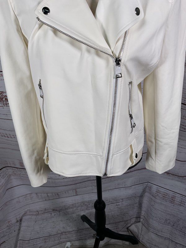 Club Monaco Women’s Asymmetrical Zippers Crepe Moto Jacket Winter White Size L