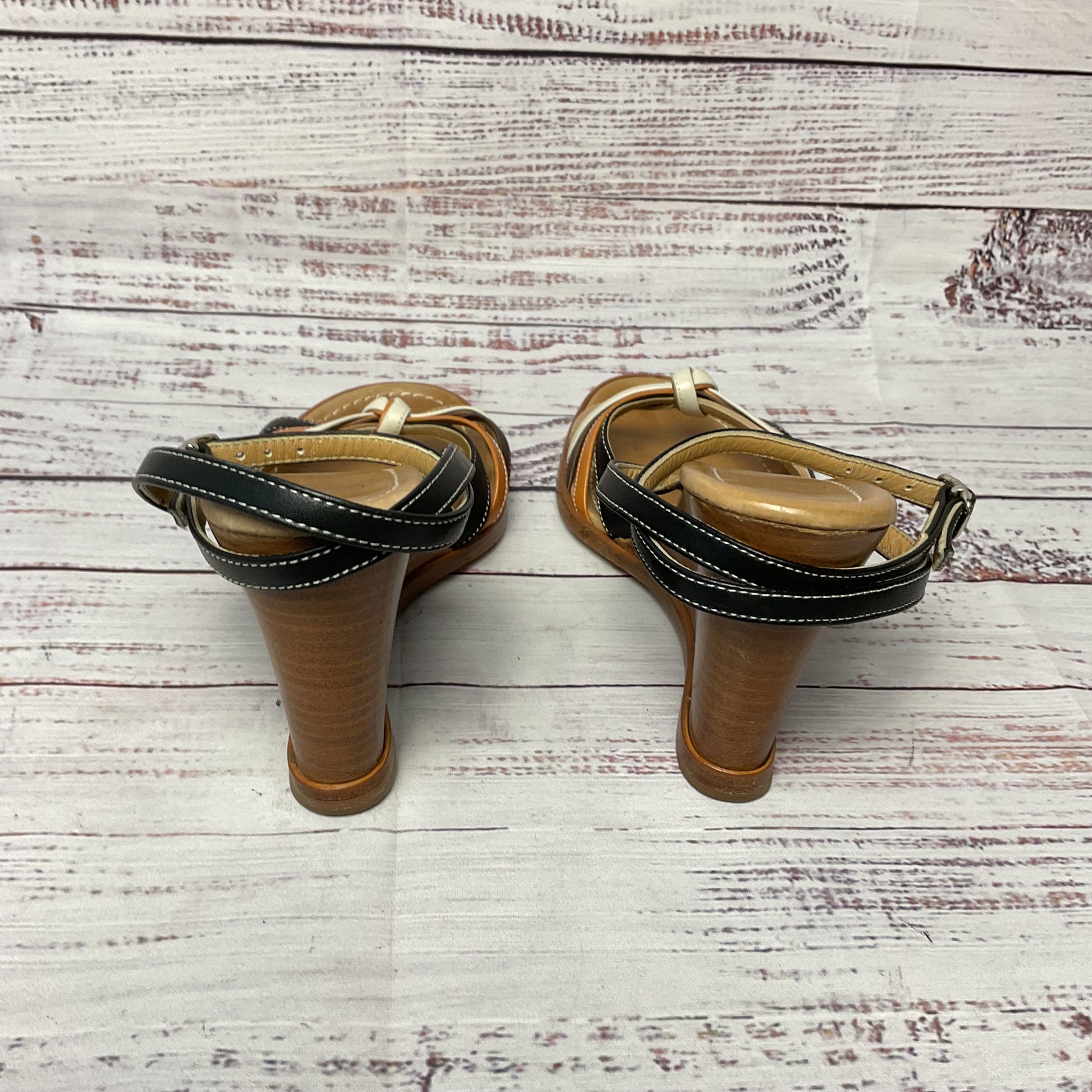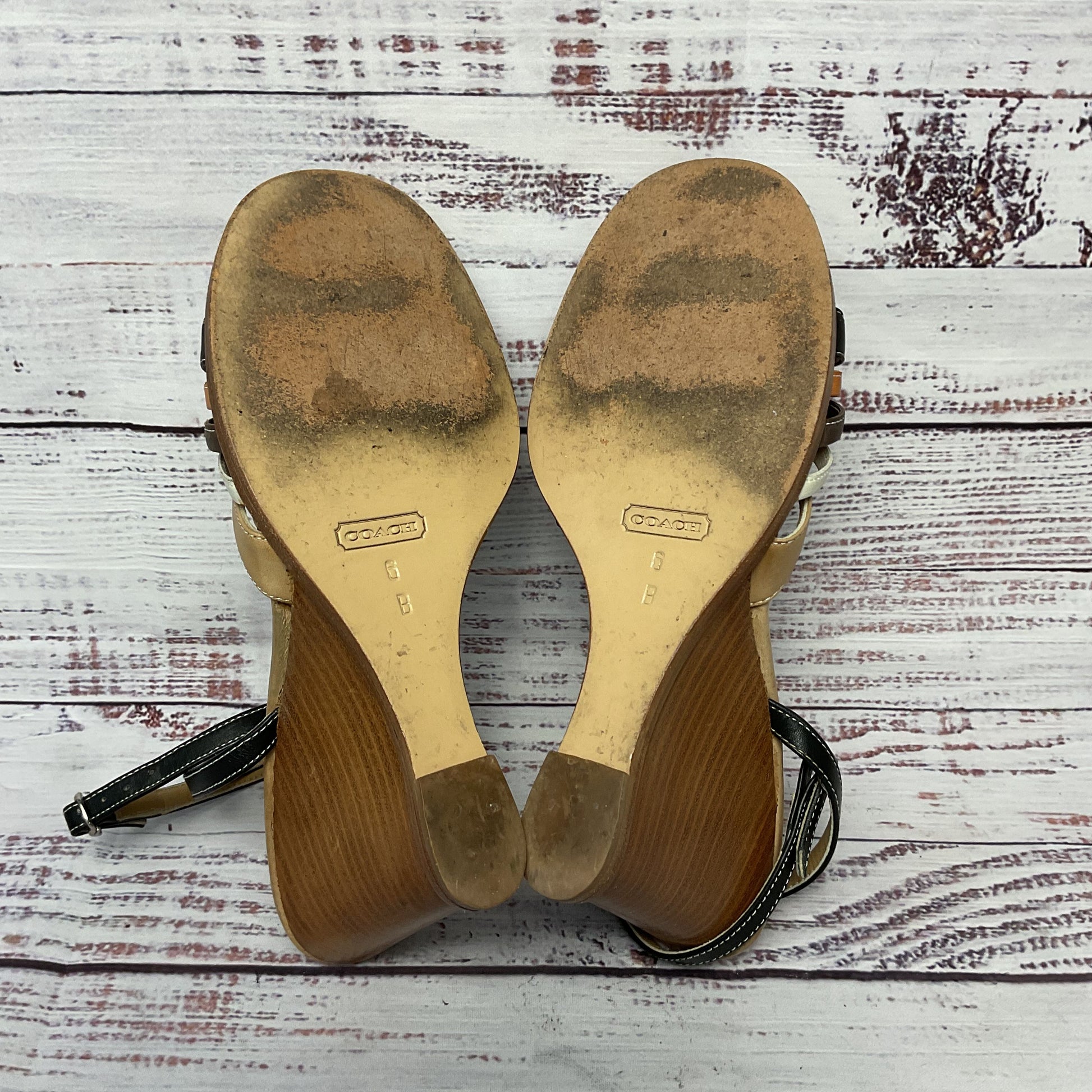 Coach Trista Brown Leather wedge Heel Sandal Women Shoes Size 6