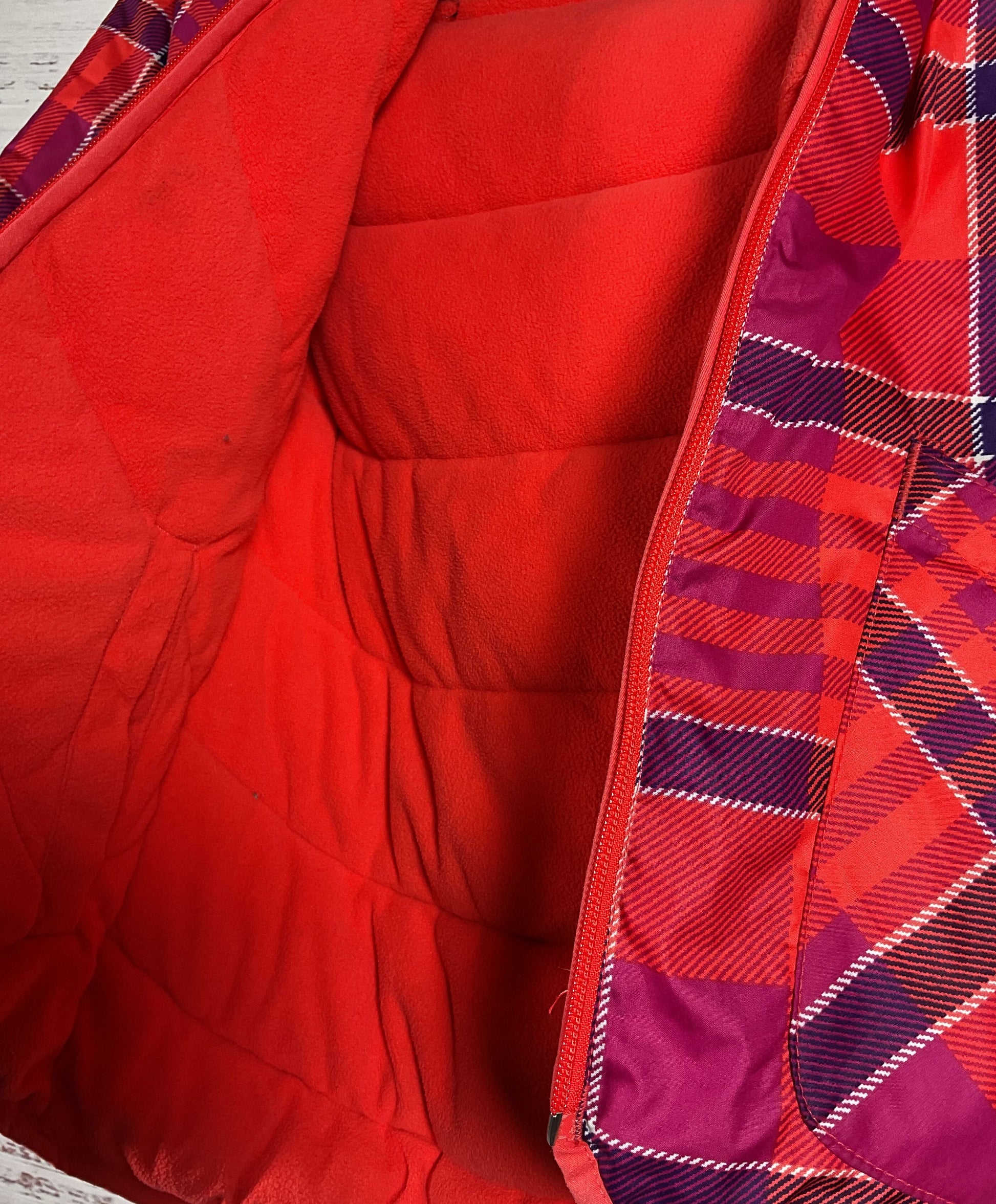 Columbia Reversible Padded Insulated Hooded Jacket Red Plaid Kids M 14-16