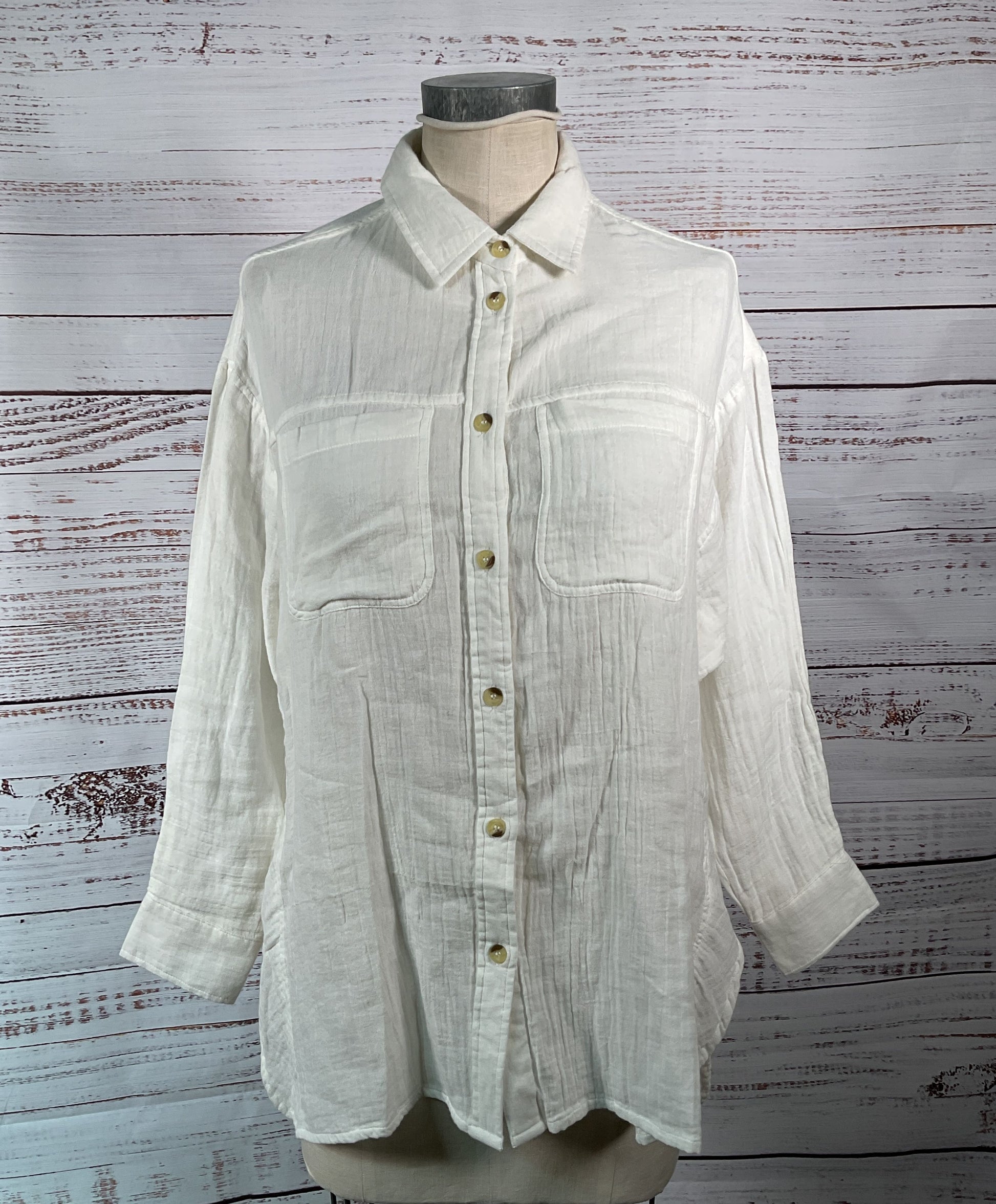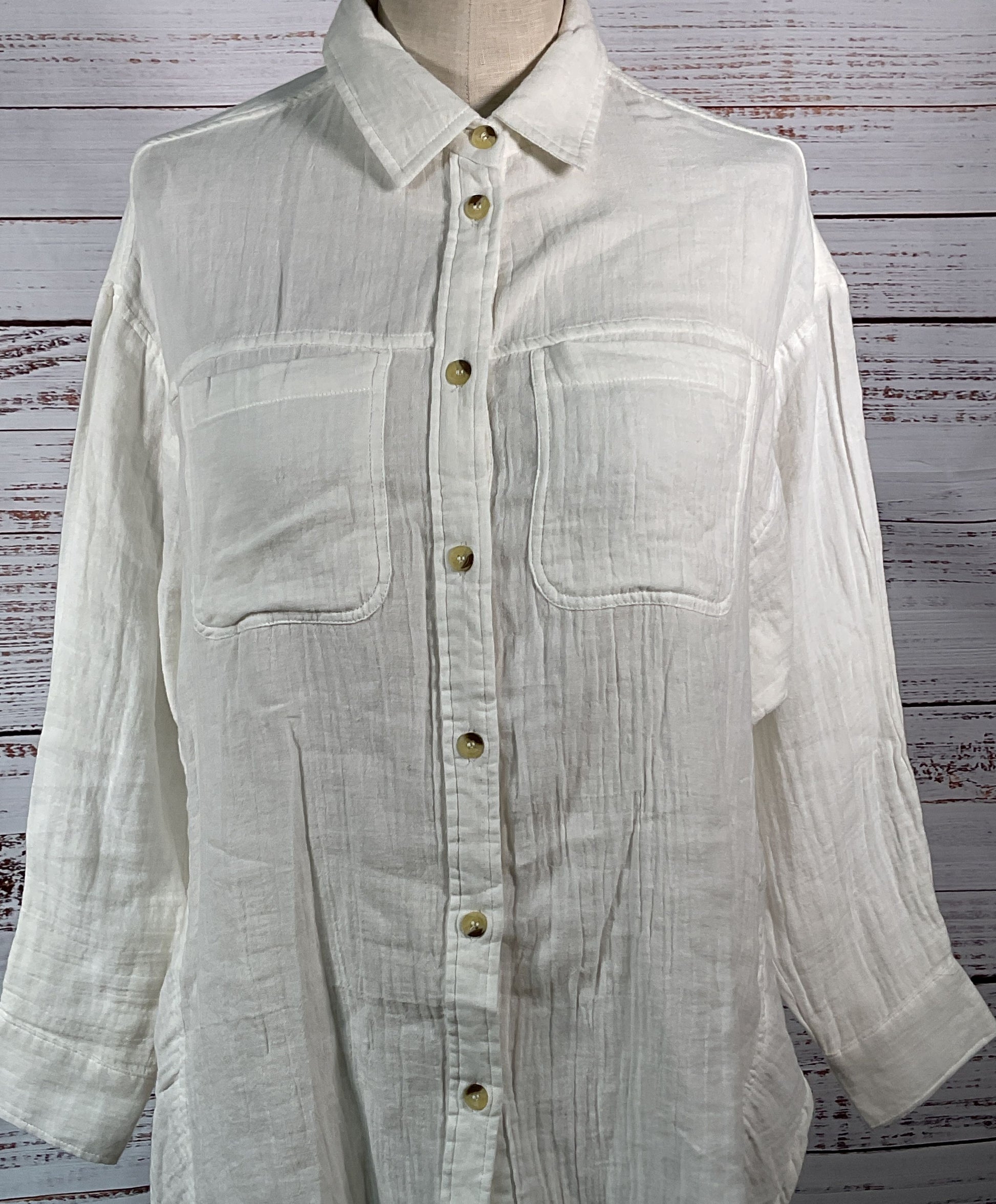 Current/Elliott Double Pocket Button Up Shirt Off White S