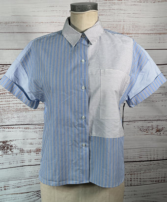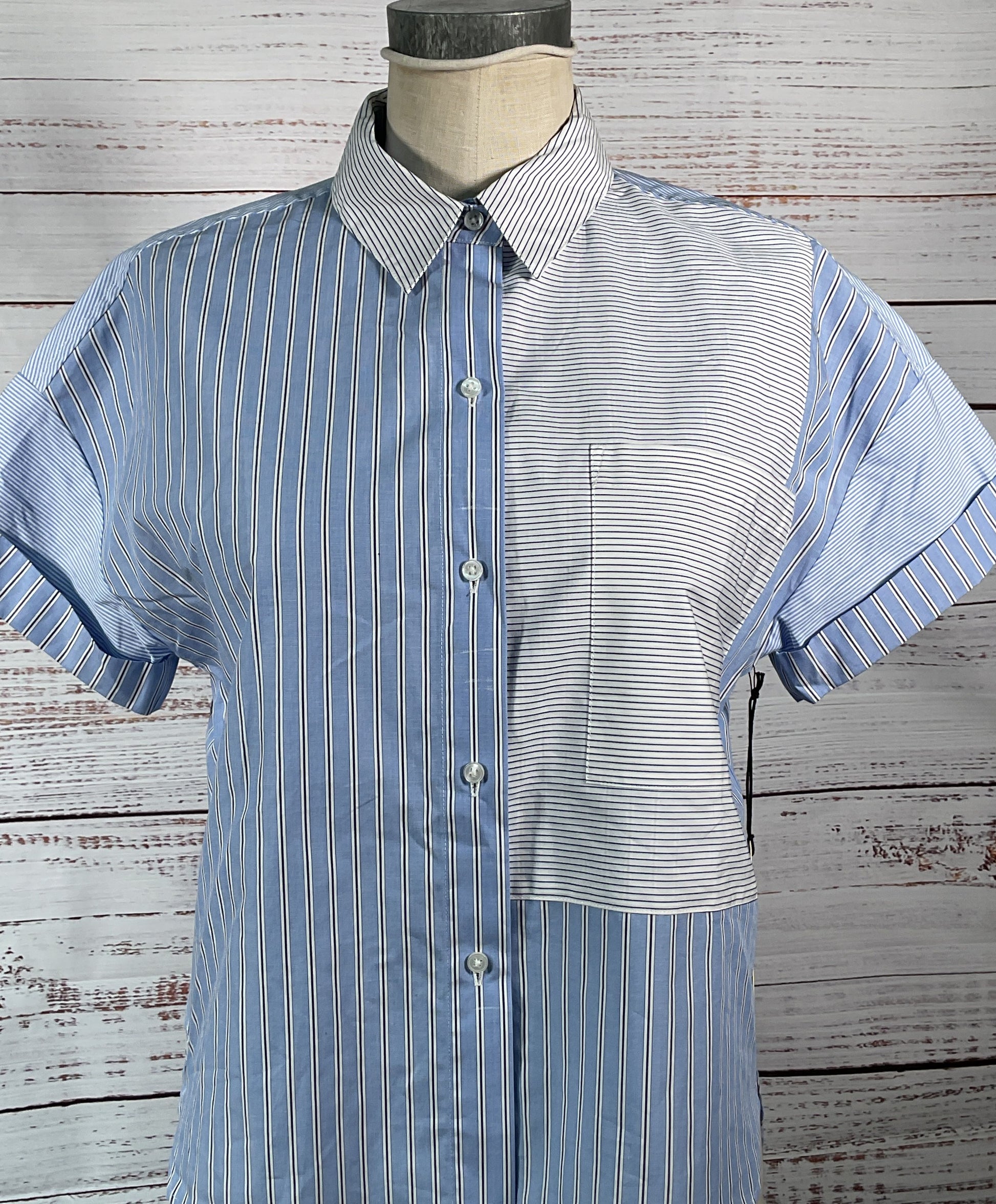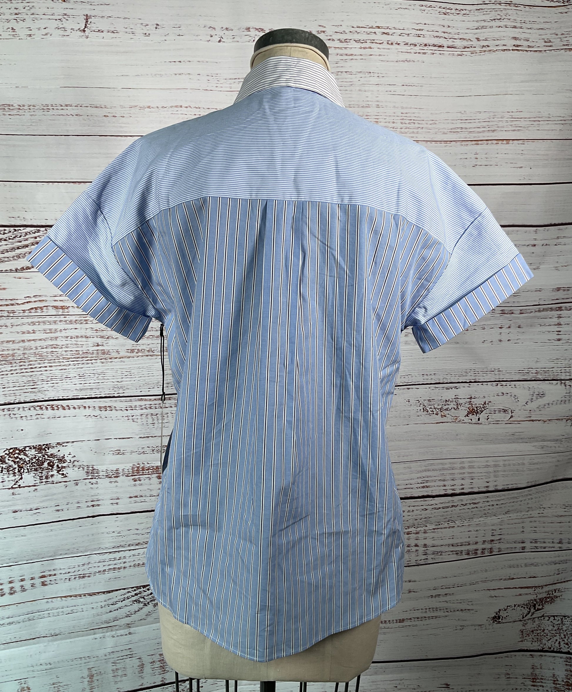 Current/Elliott Striped Short Sleeve Button Up Shirt Blue S