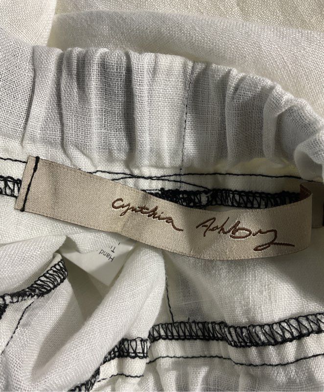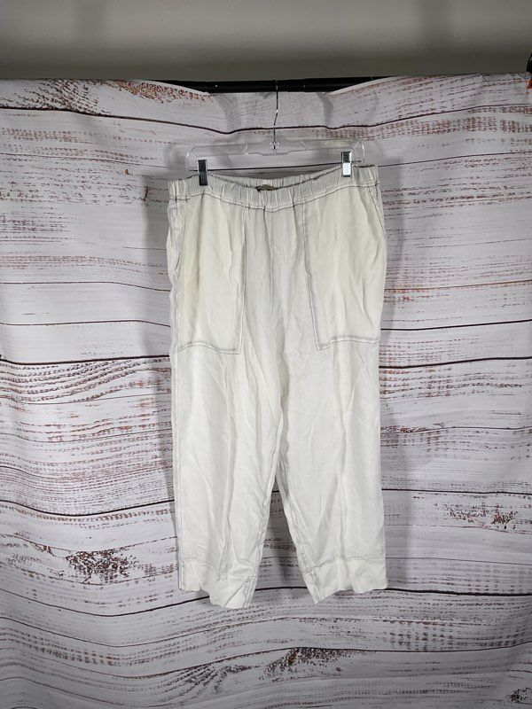 Cynthia Ashby Women's White 100% Linen Cropped Wide Leg Pants Size Large
