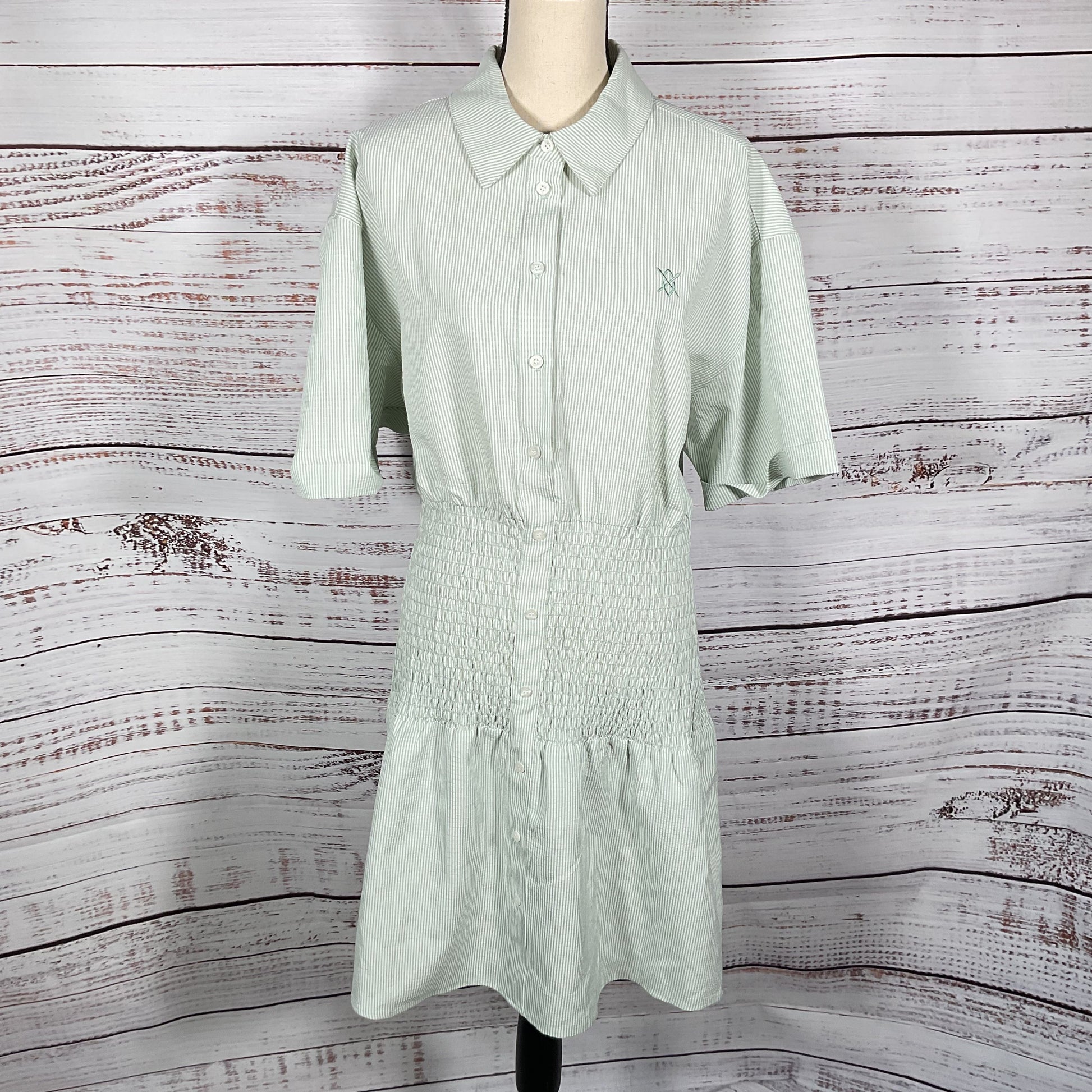 Daily Paper Green White Shirt Dress - Size XXL