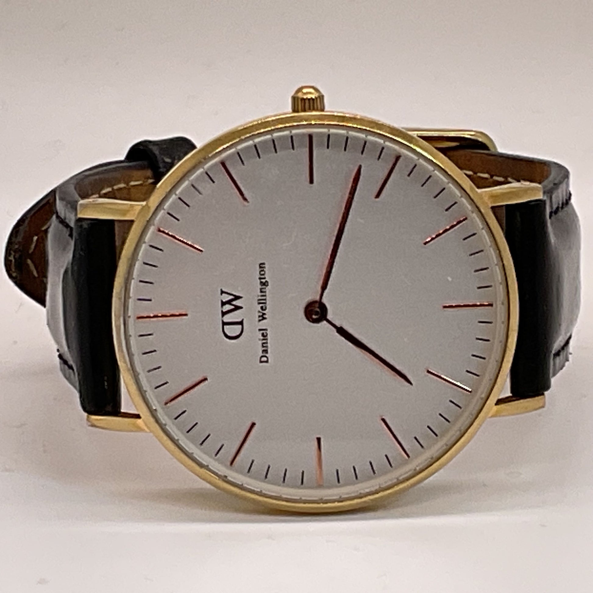 DANIEL WELLINGTON Men's Gold Tone Black Leather Band Watch