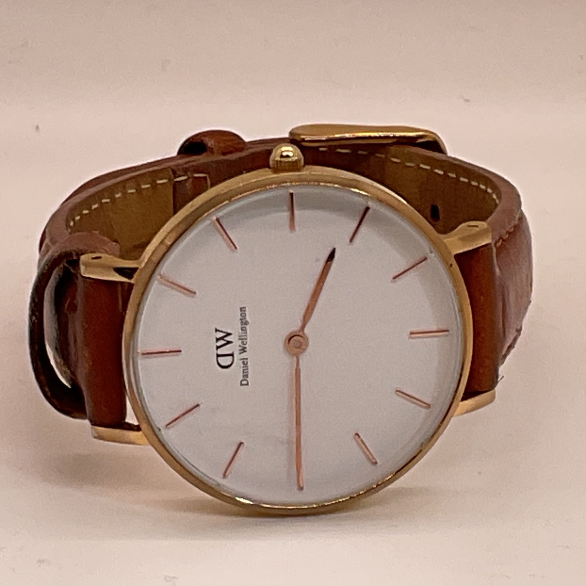 DANIEL WELLINGTON Women's Gold Tone Brown Leather Band Watch