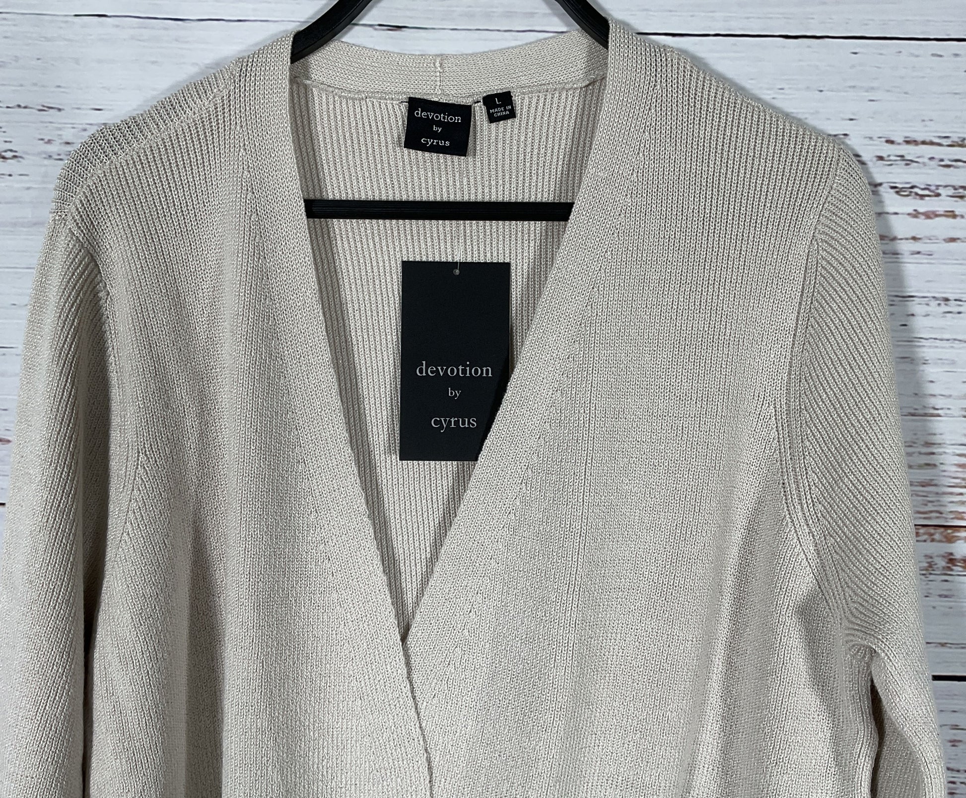 Devotion by Cyrus Women's Beige Open Cardigan Sweater Size L