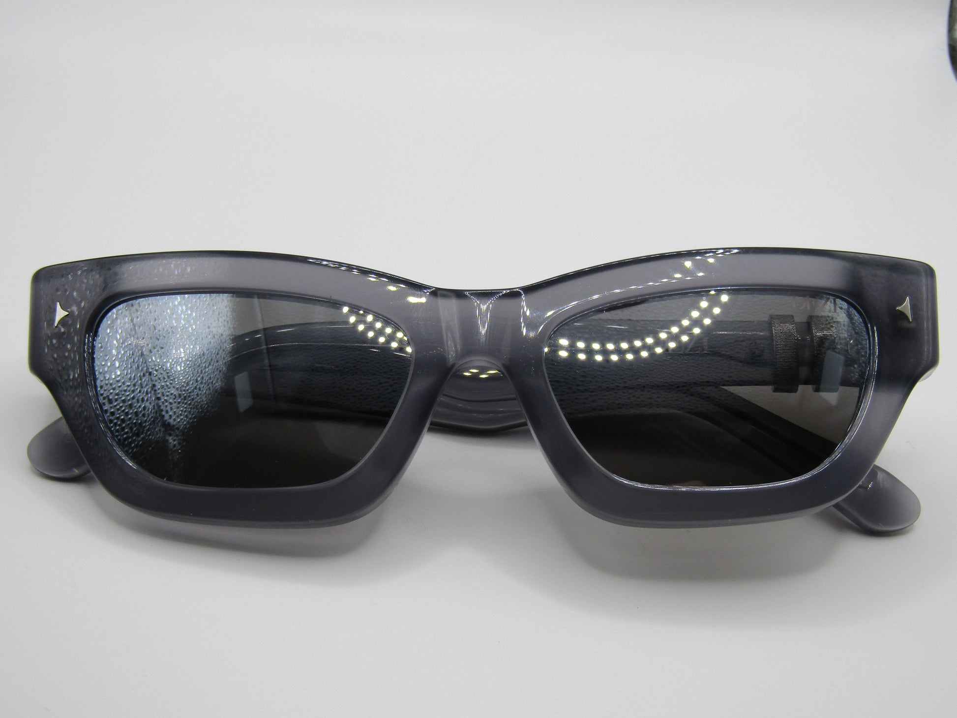 Dezi Stacked Women's Gray Smoke Acetate Cat Eye Sunglasses
