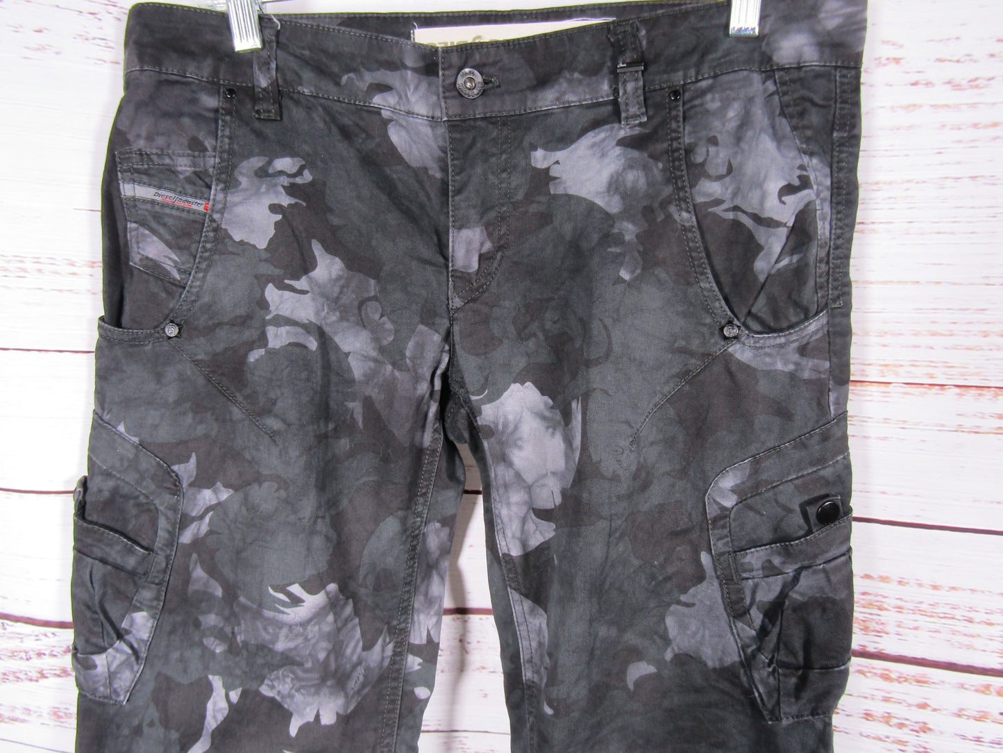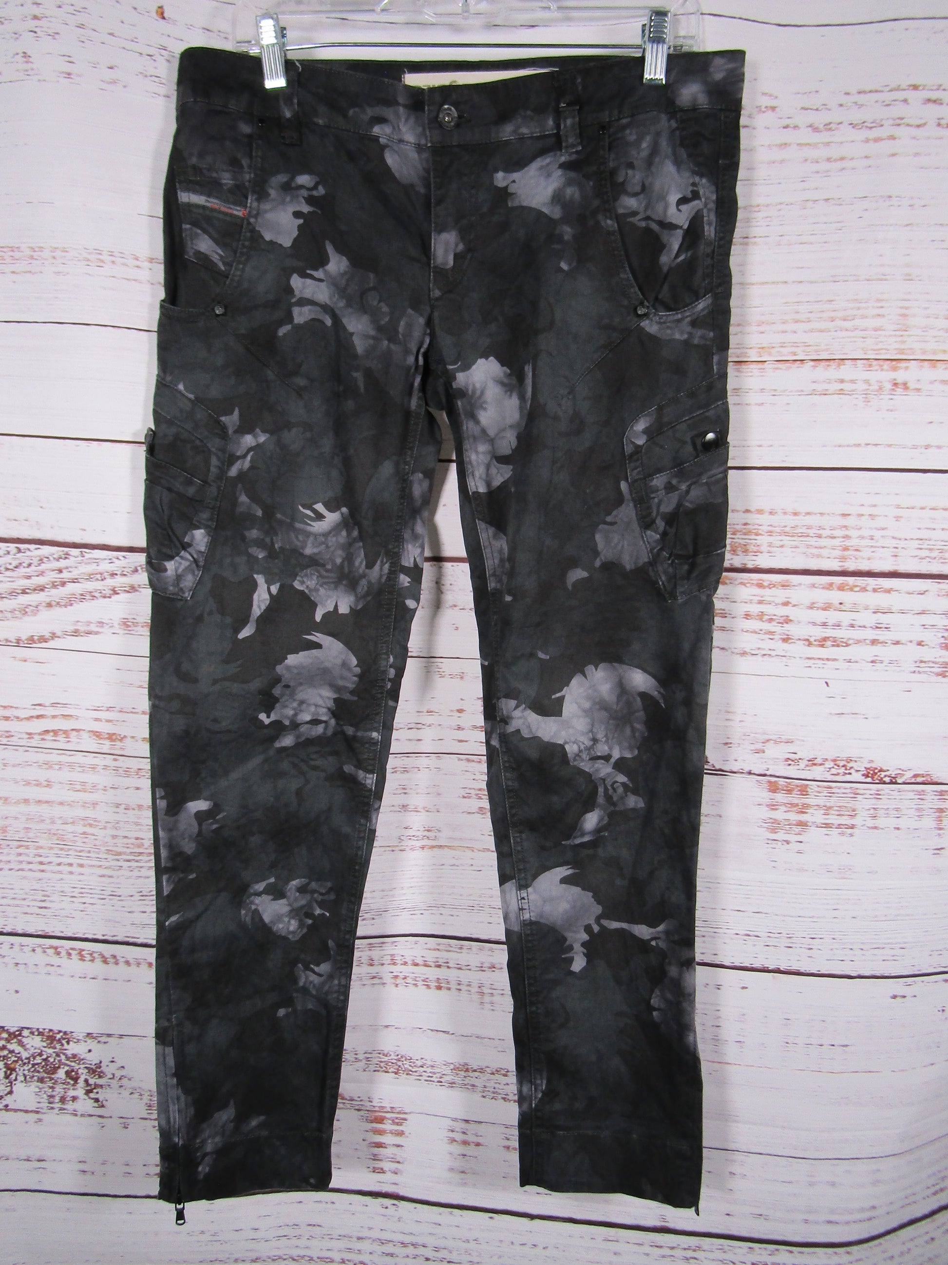 Diesel Women's Black & Gray Camo Print Slim Fit Pants Size 29