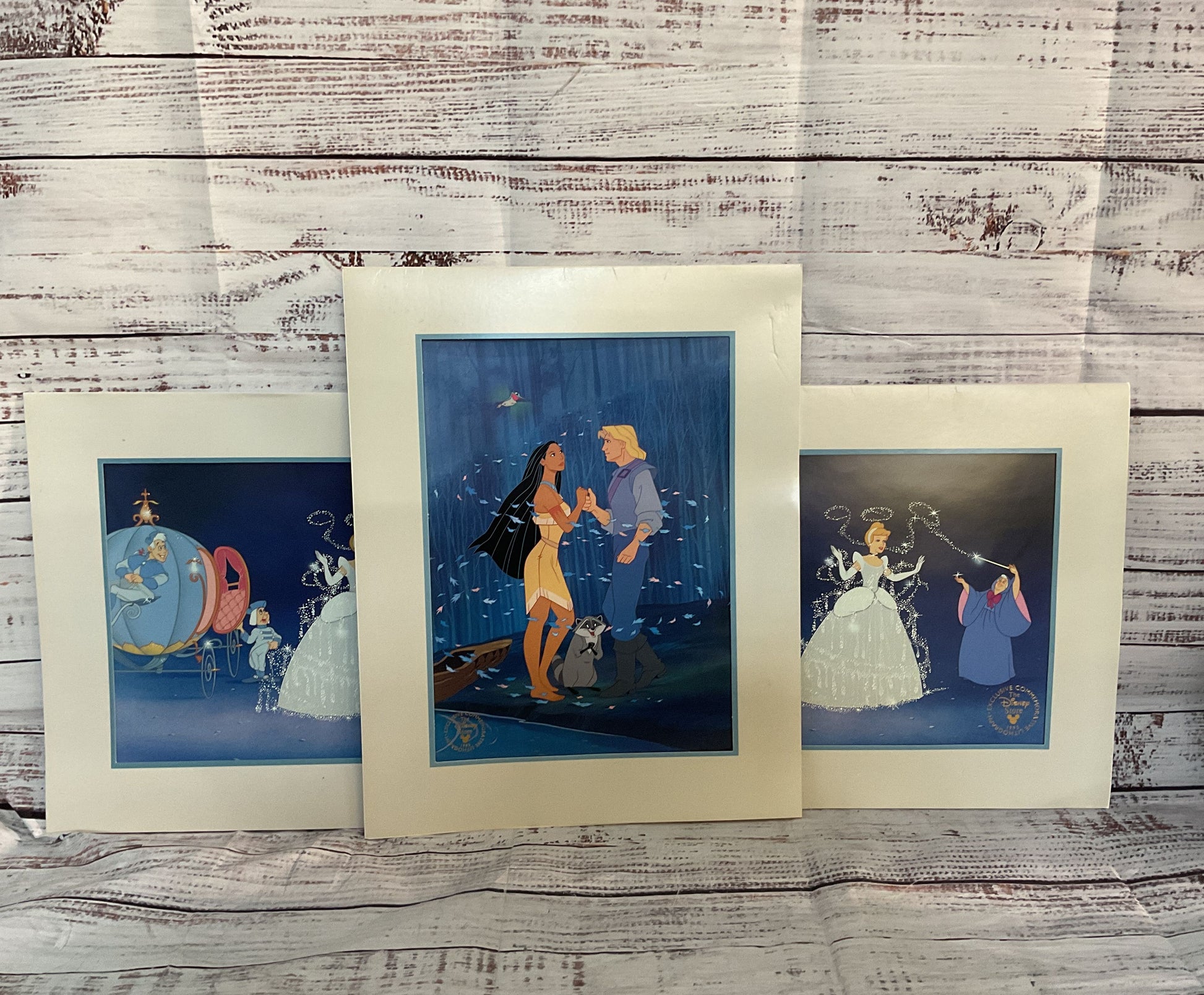 Disney Vintage Cinderella Pocahontas Lot of 3 Lithographs