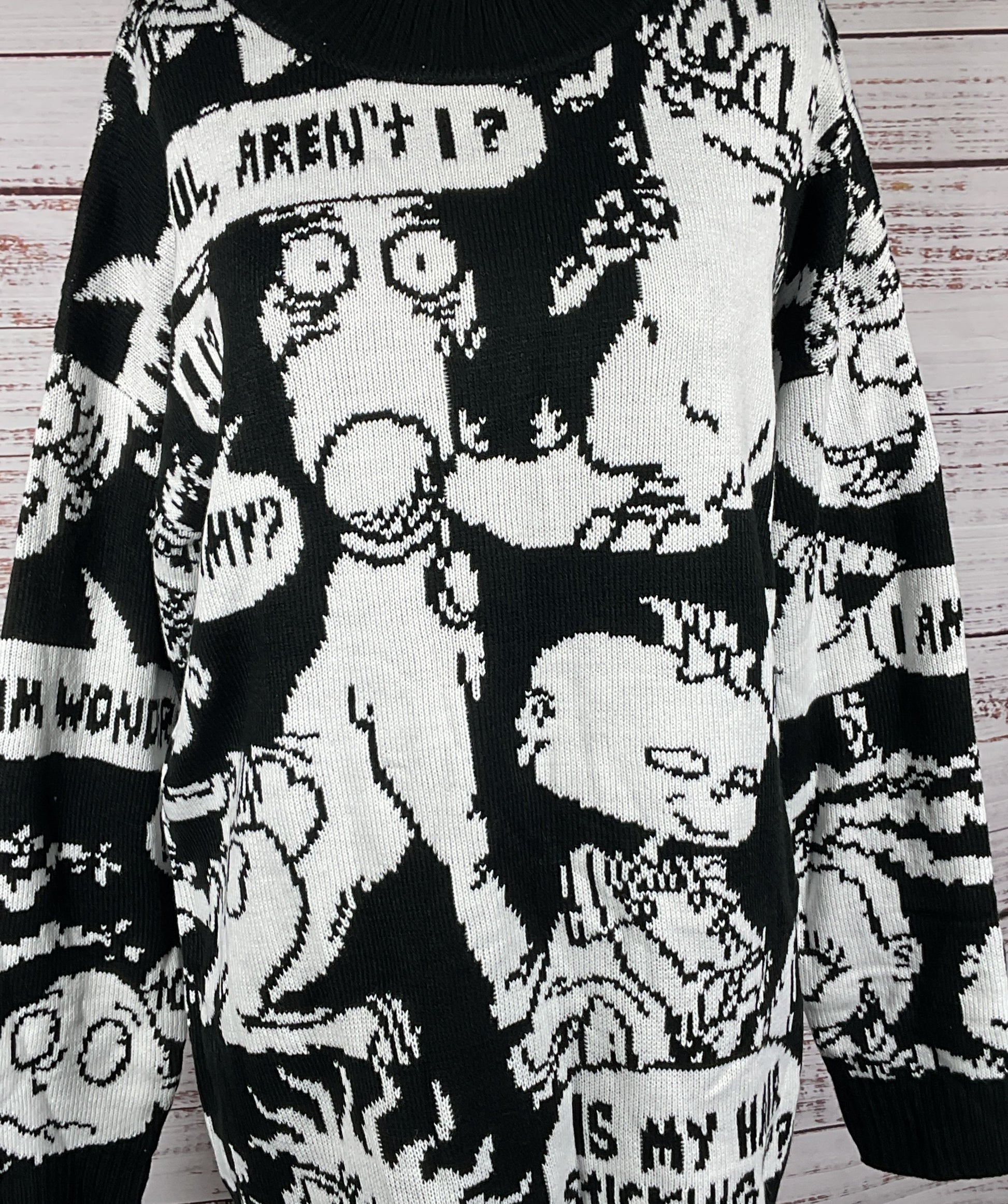 Dolls Kill Rugrats Thinking Too Much Knit Graphic Sweater Multicolor M/L