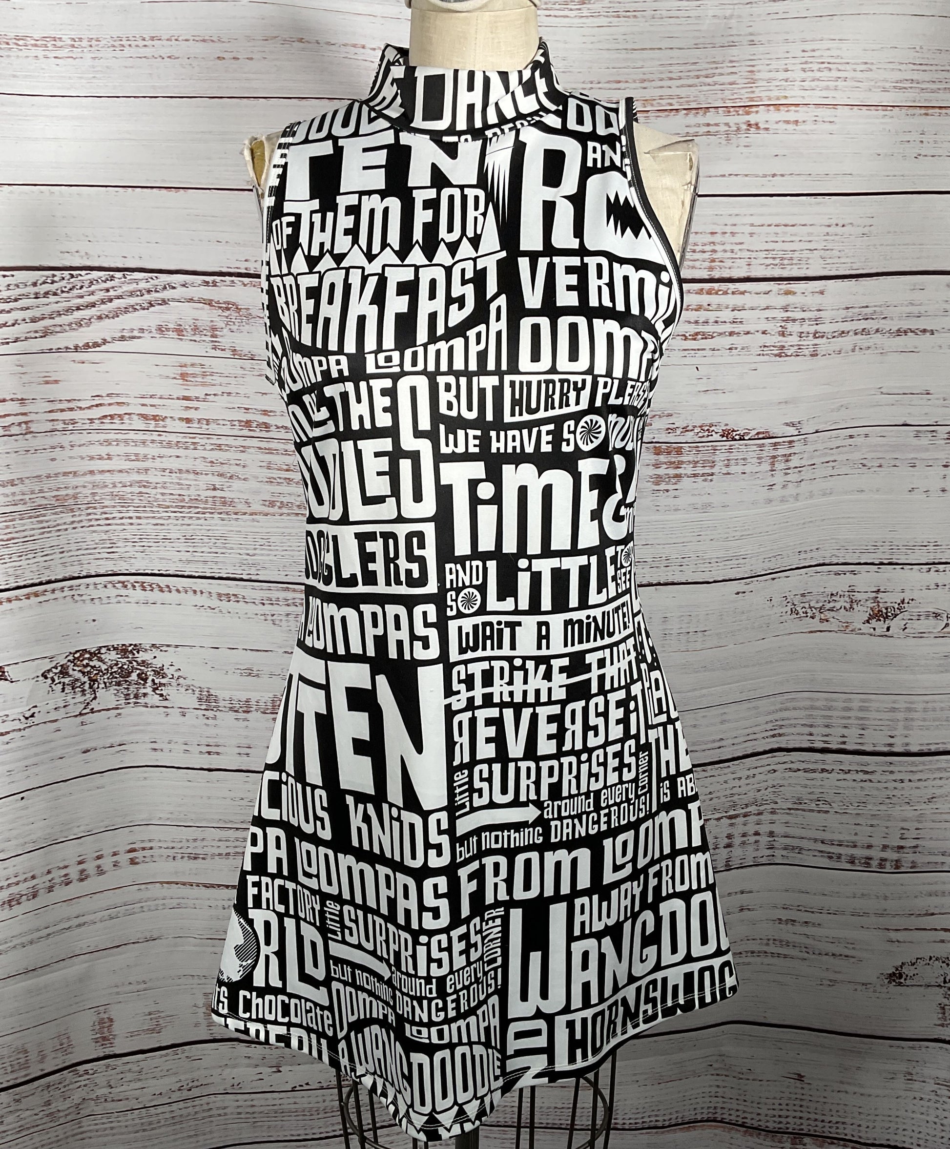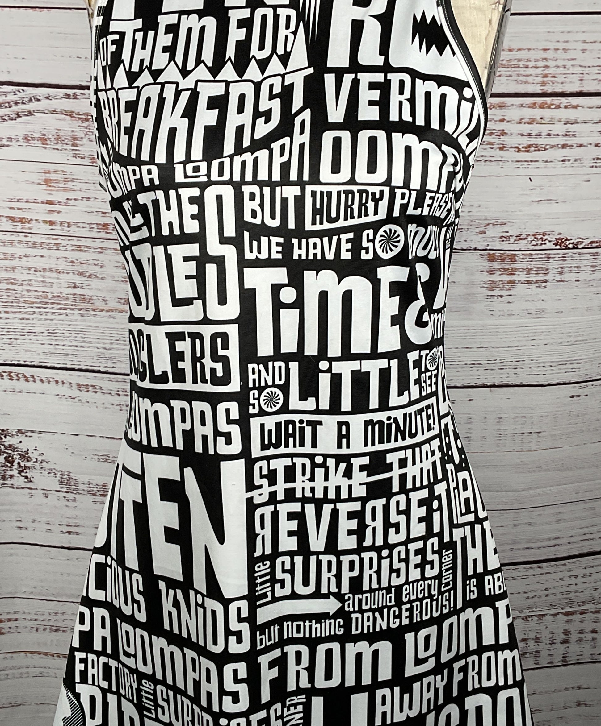 Dolls Kill Willy Wonka Word Graphic Mod Mini Dress Black White XL