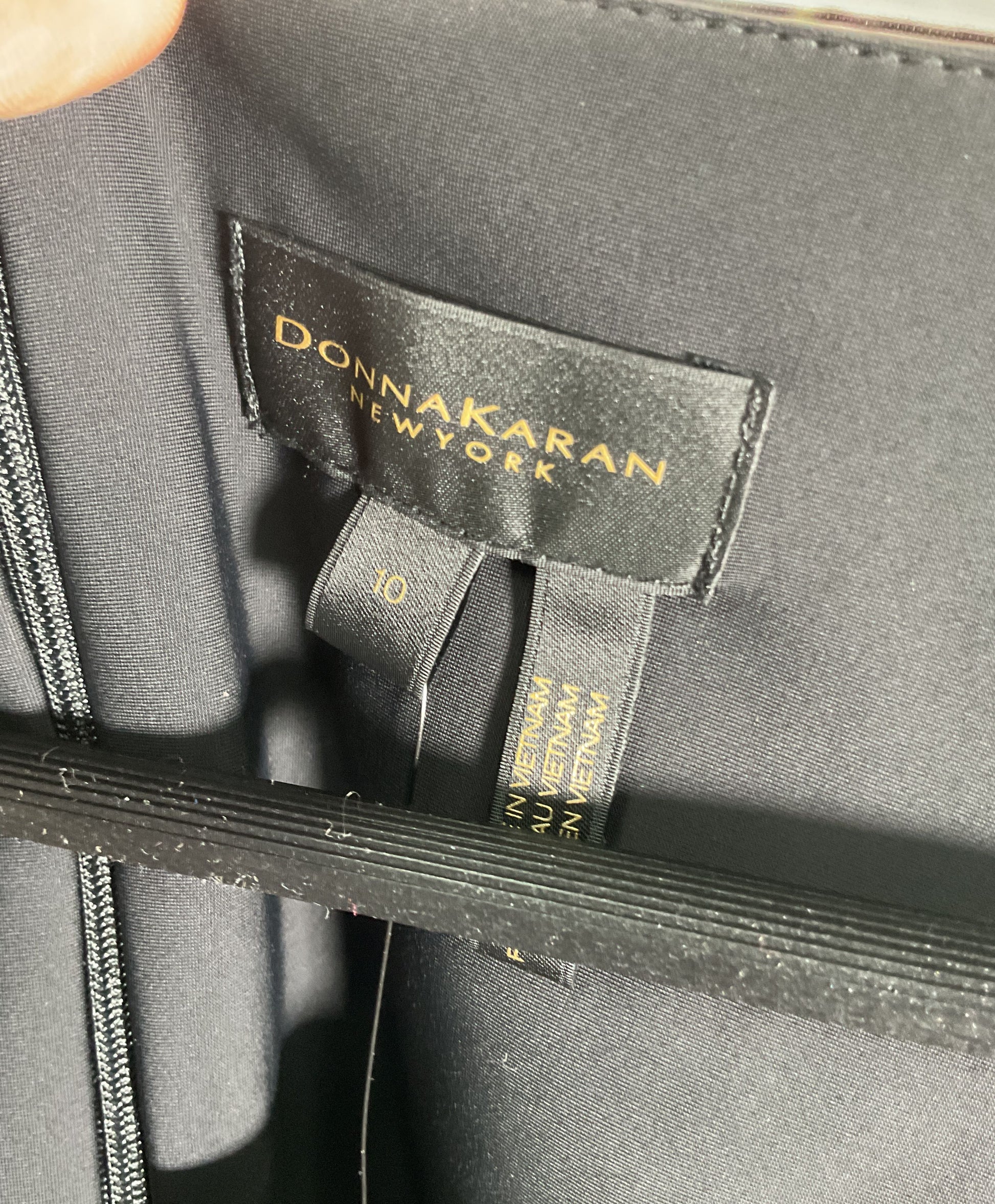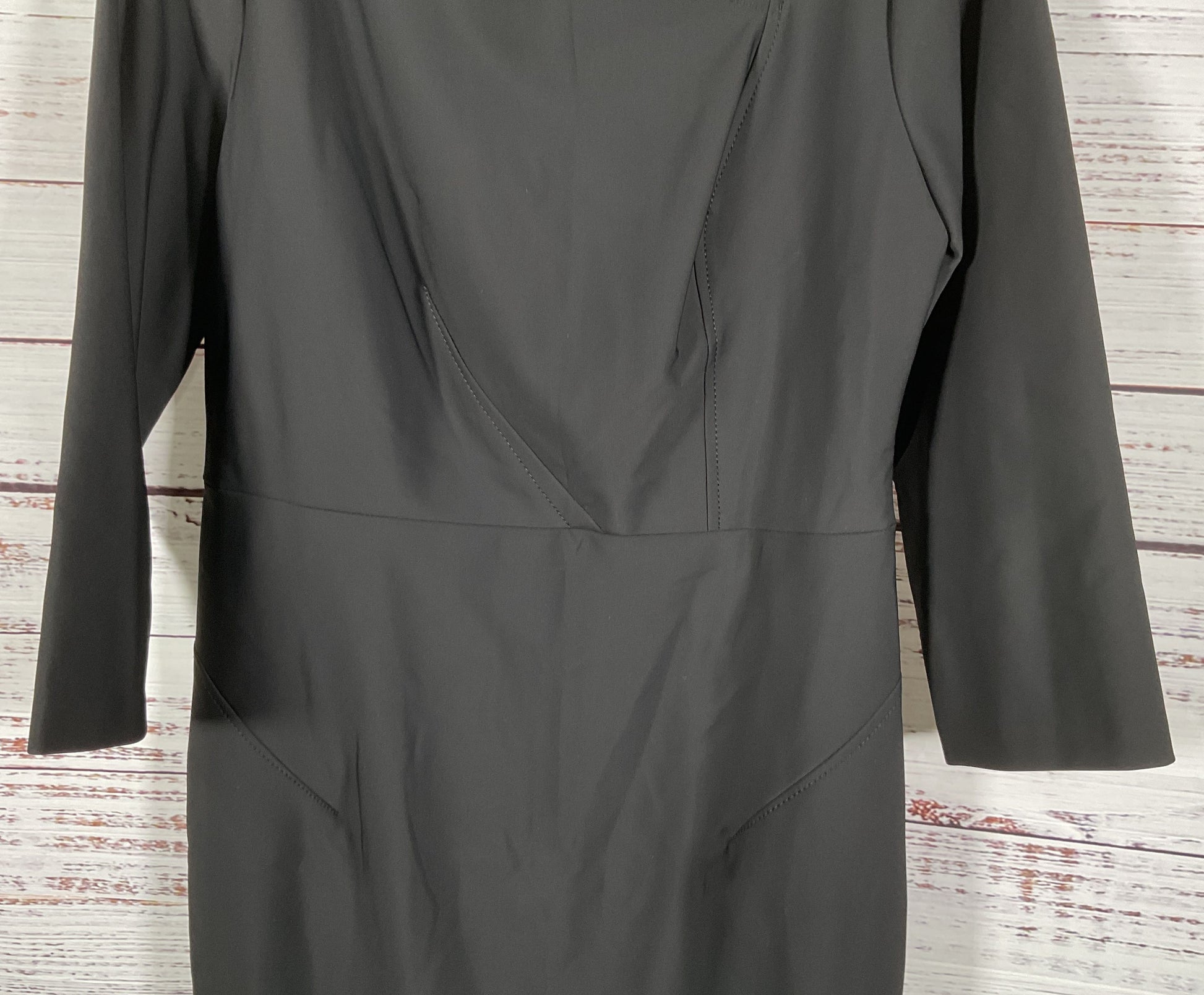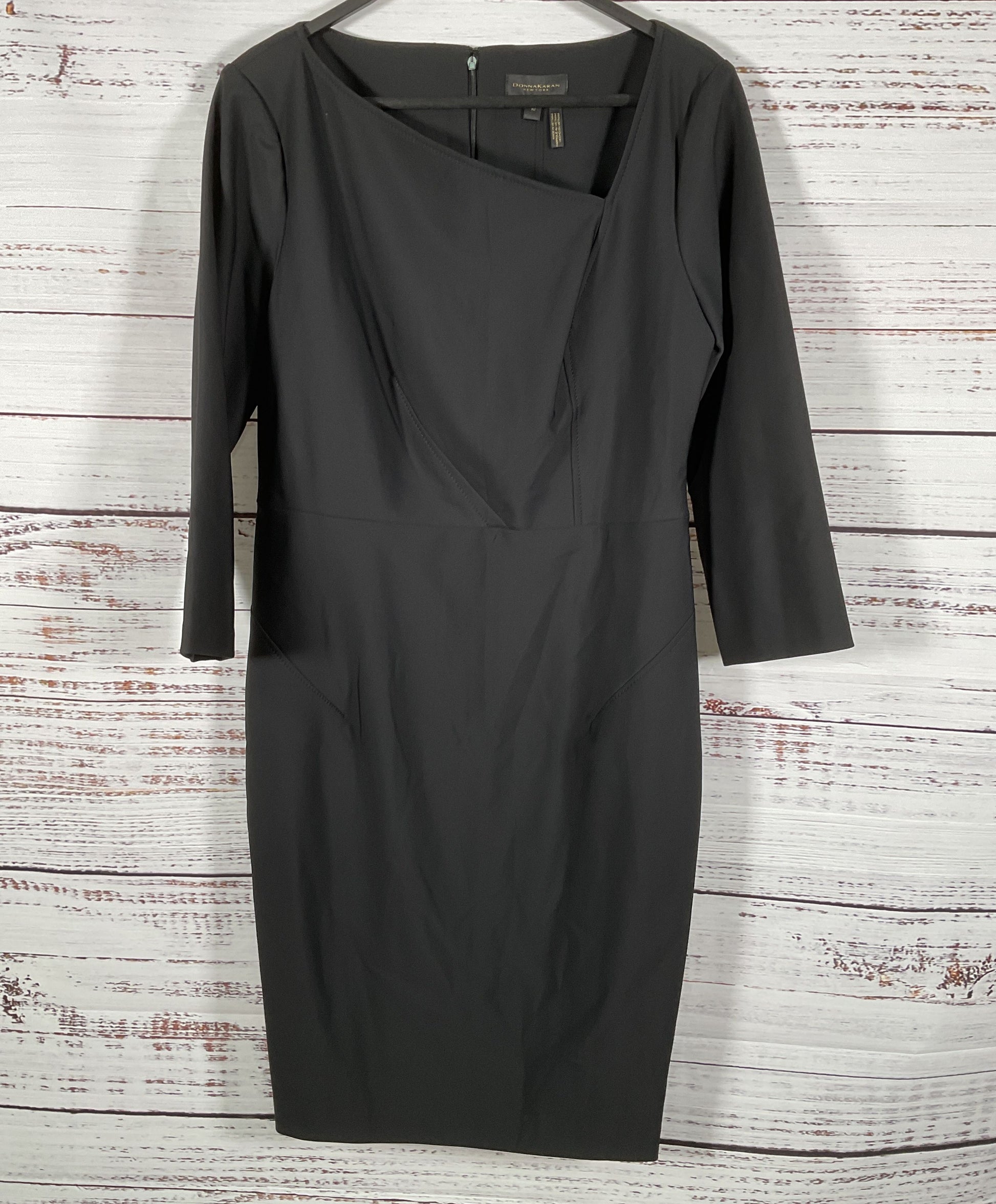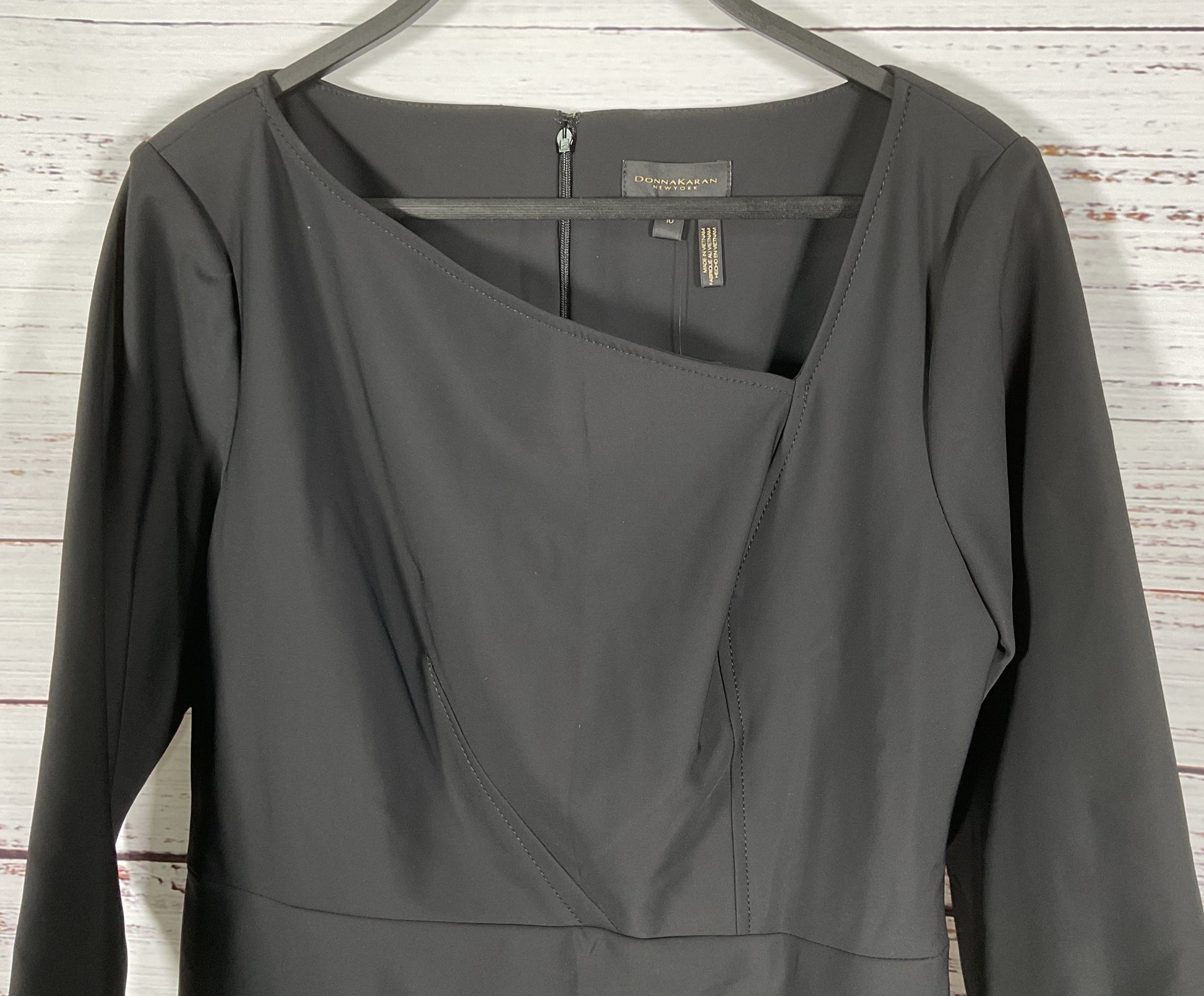 Donna Karan Women's Black Asymmetrical Neck 3/4 Sleeves Sheath Dress Size 10