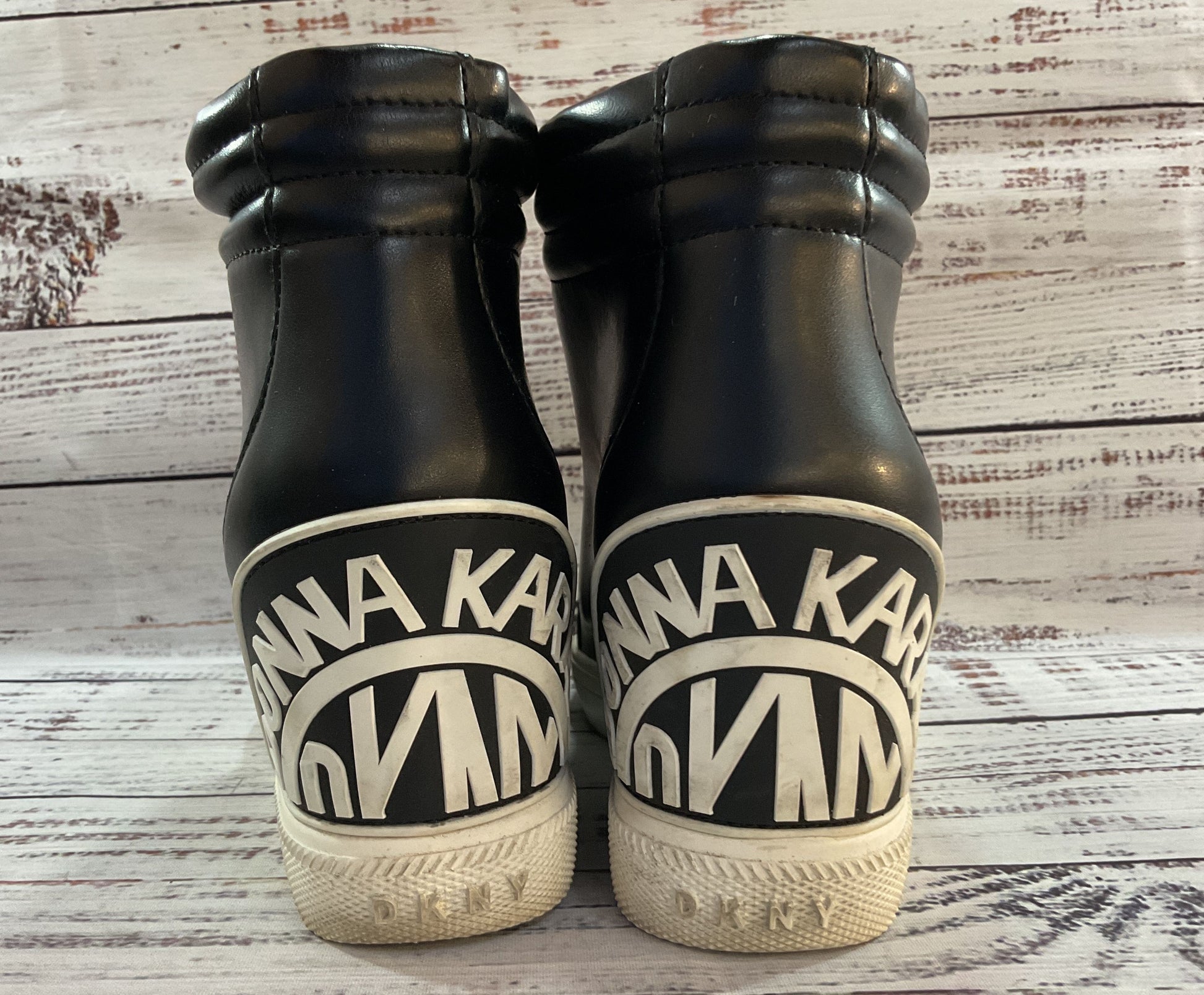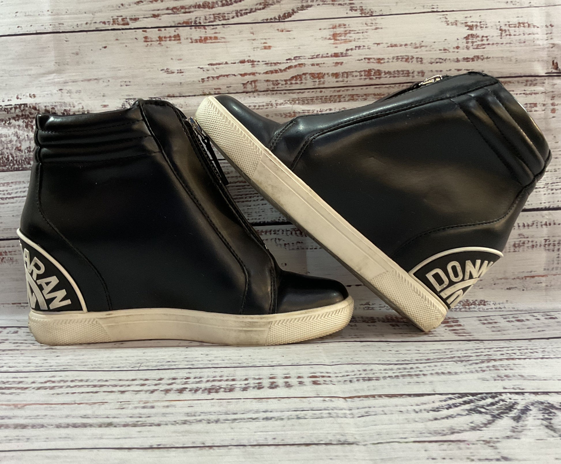 Donna Karan Women's Black Faux Leather Wedge Sneakers Size 6