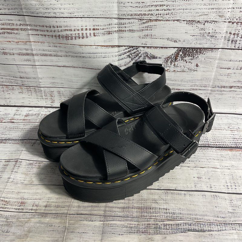 Dr. Martens Voss II Quad Black Leather Platform Gladiator Sandal Women's Size 9