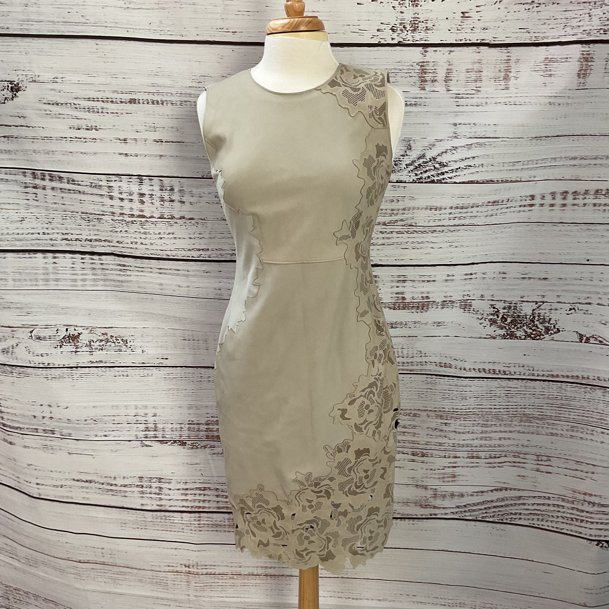 Elie Tahari Avital Taupe Leather Paneled Sheath Dress As-Is - Size 4