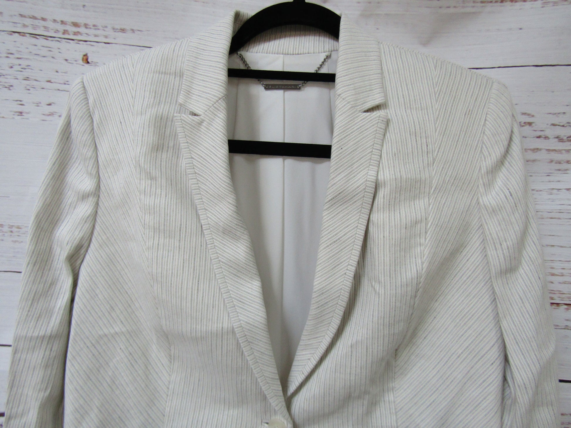 Elie Tahari Ivy Women's White Striped Linen Blend Blazer Jacket Size 12