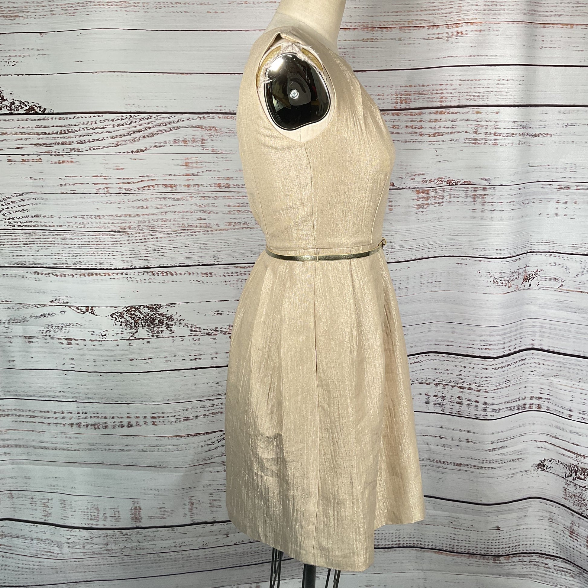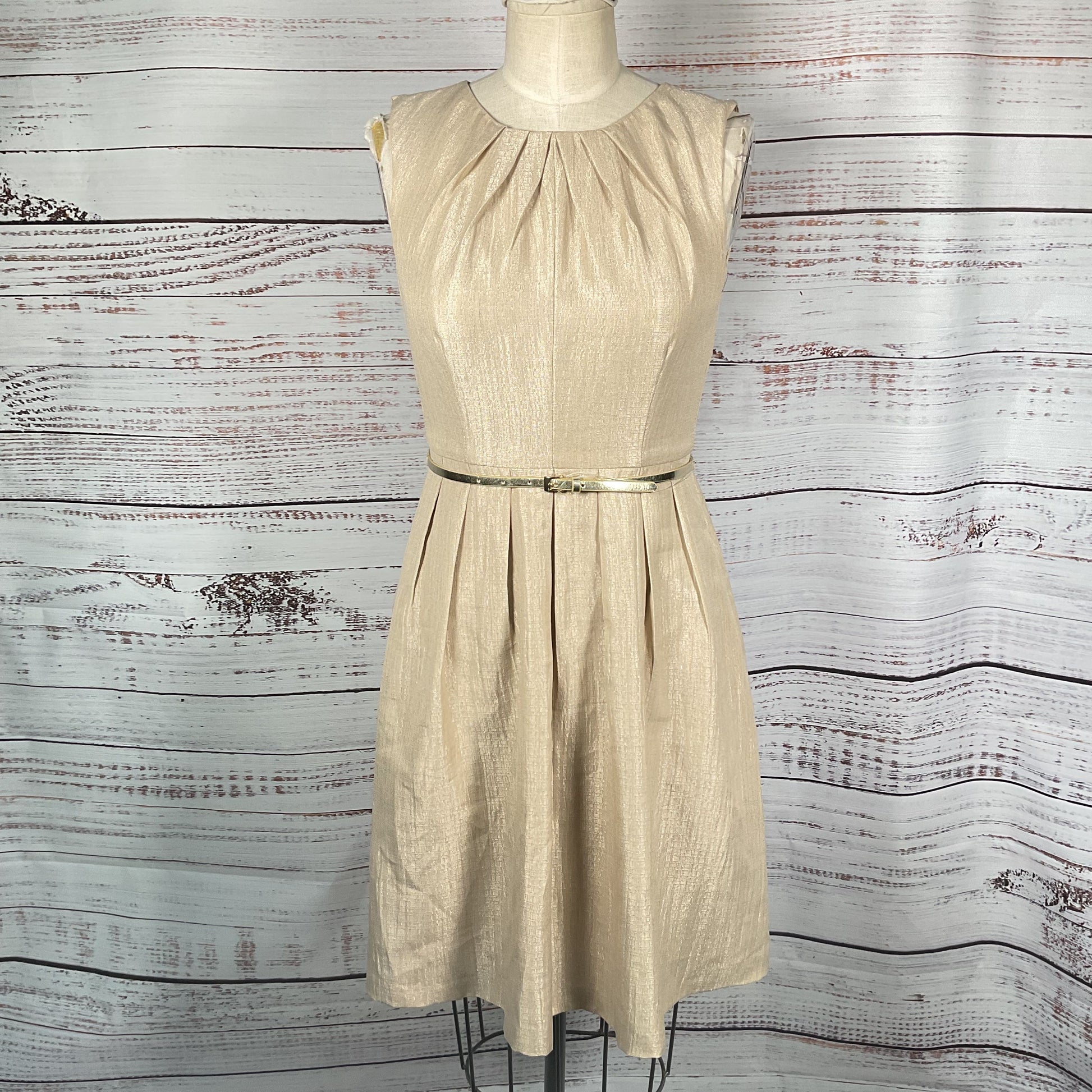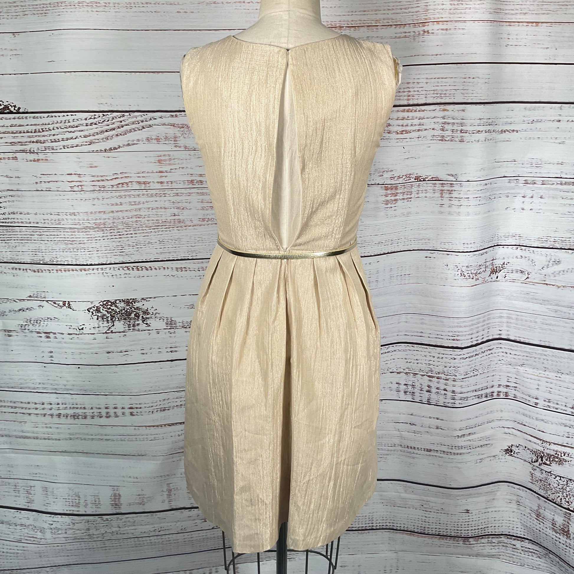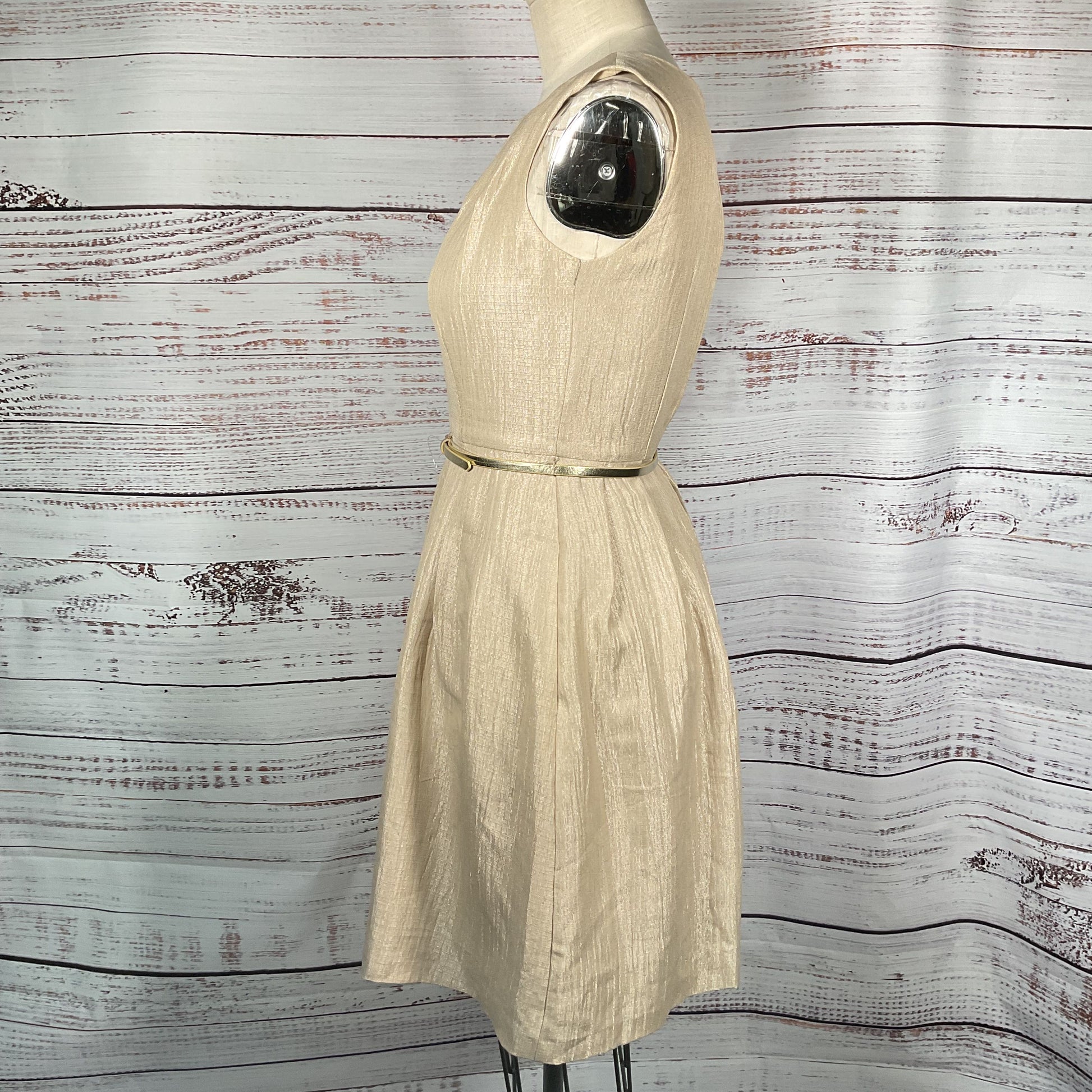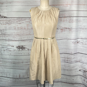 Ellen Tracy Beige Metallic Tone Sleeveless Belted Cocktail Dress - Size 2