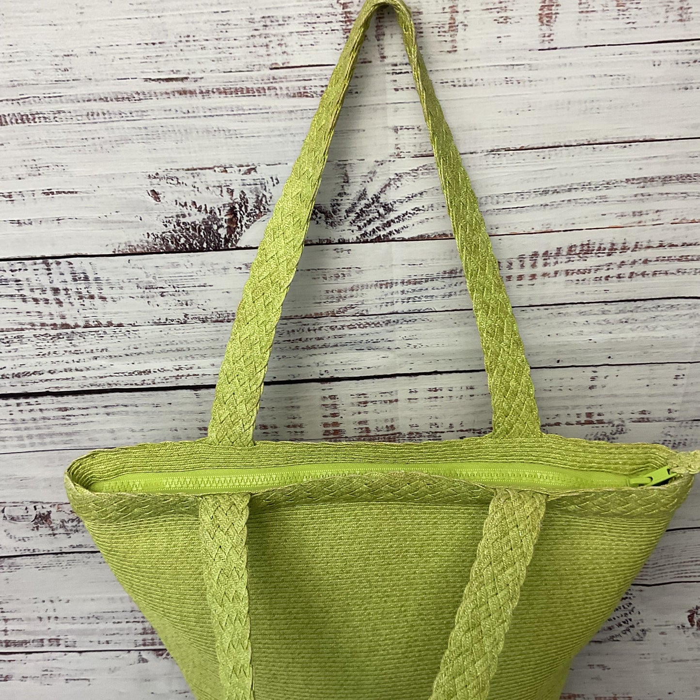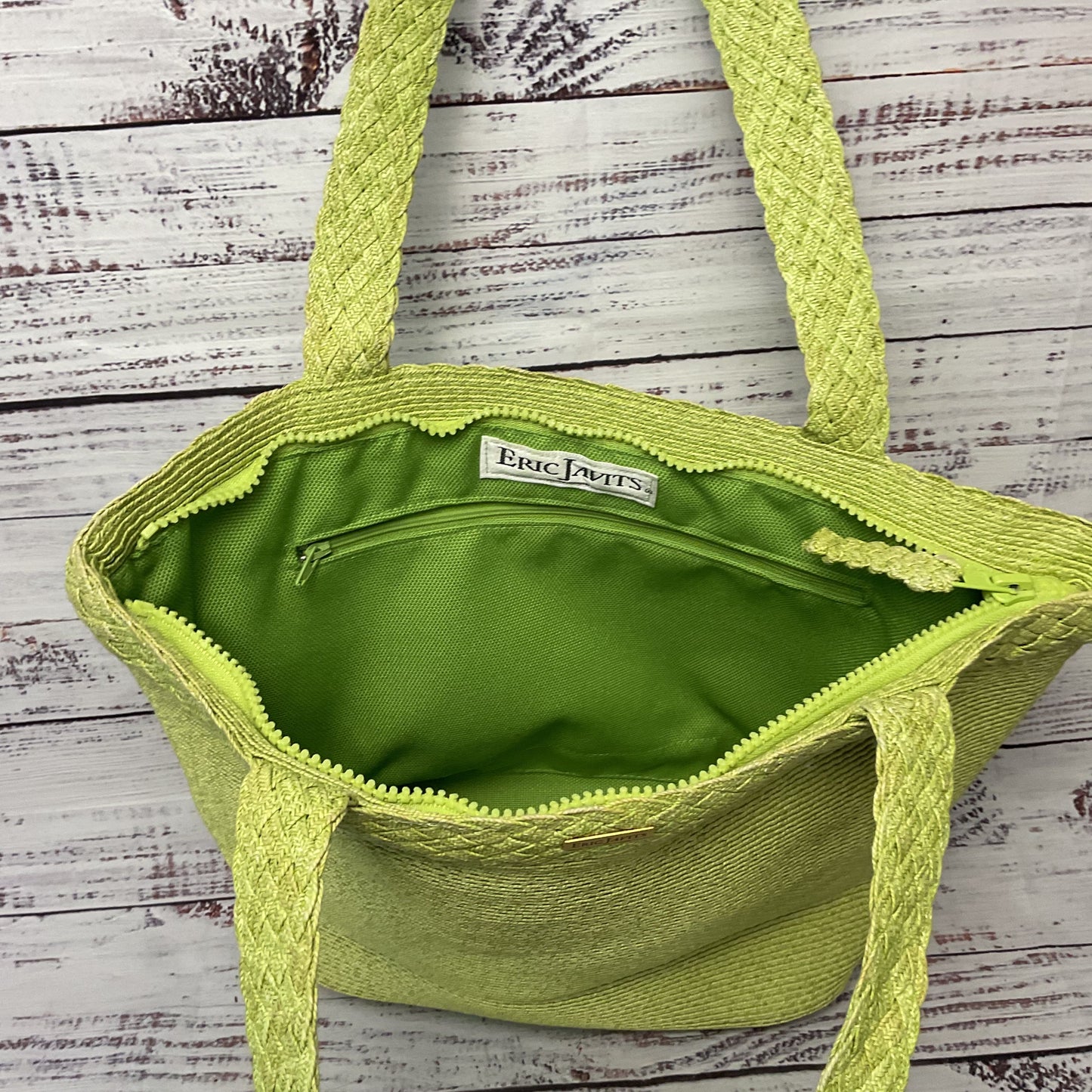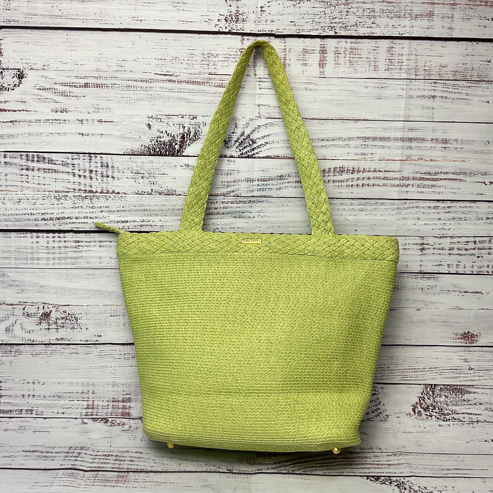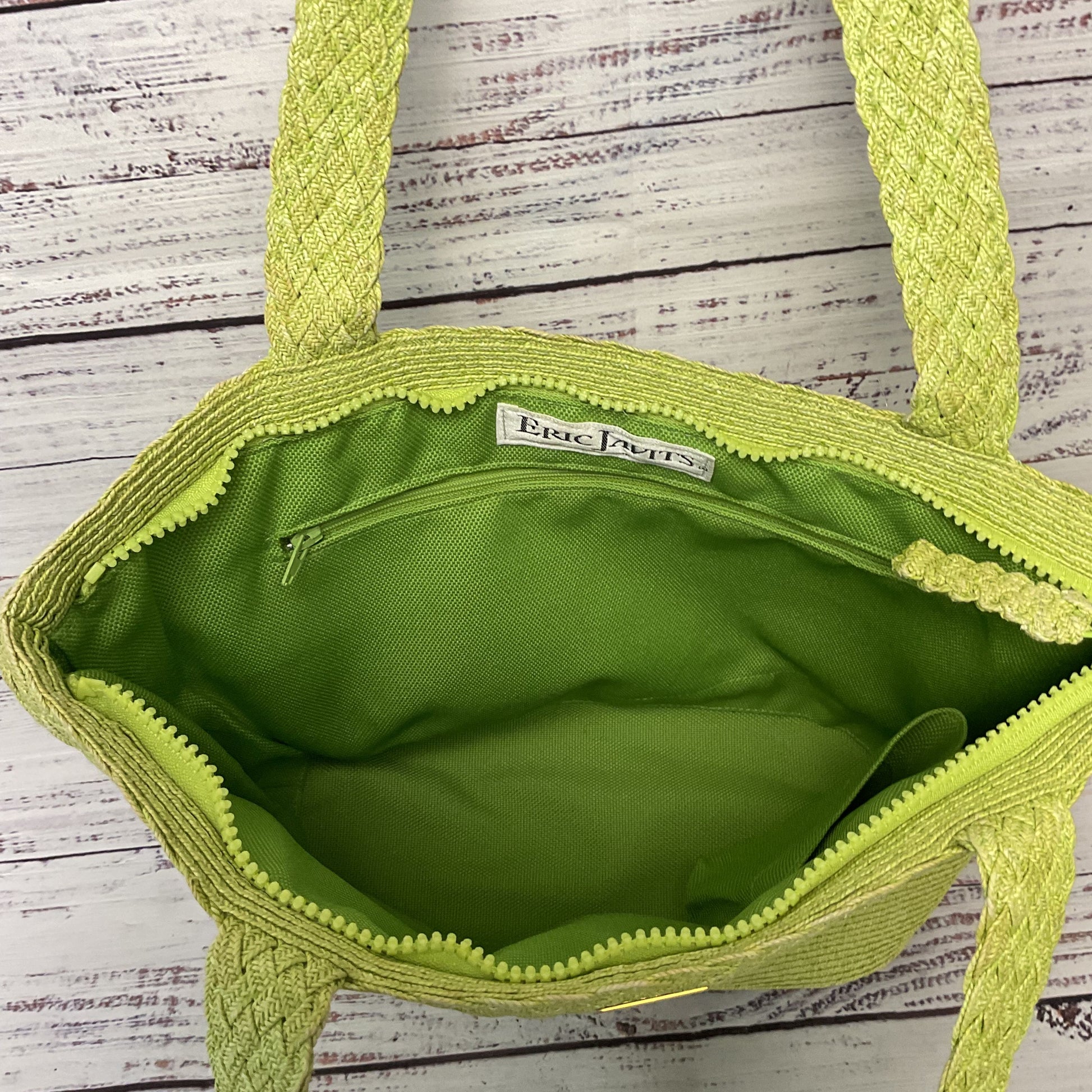 Eric Javis Green Zipper Straw Double Handle Tote Shoulder Bag Purse