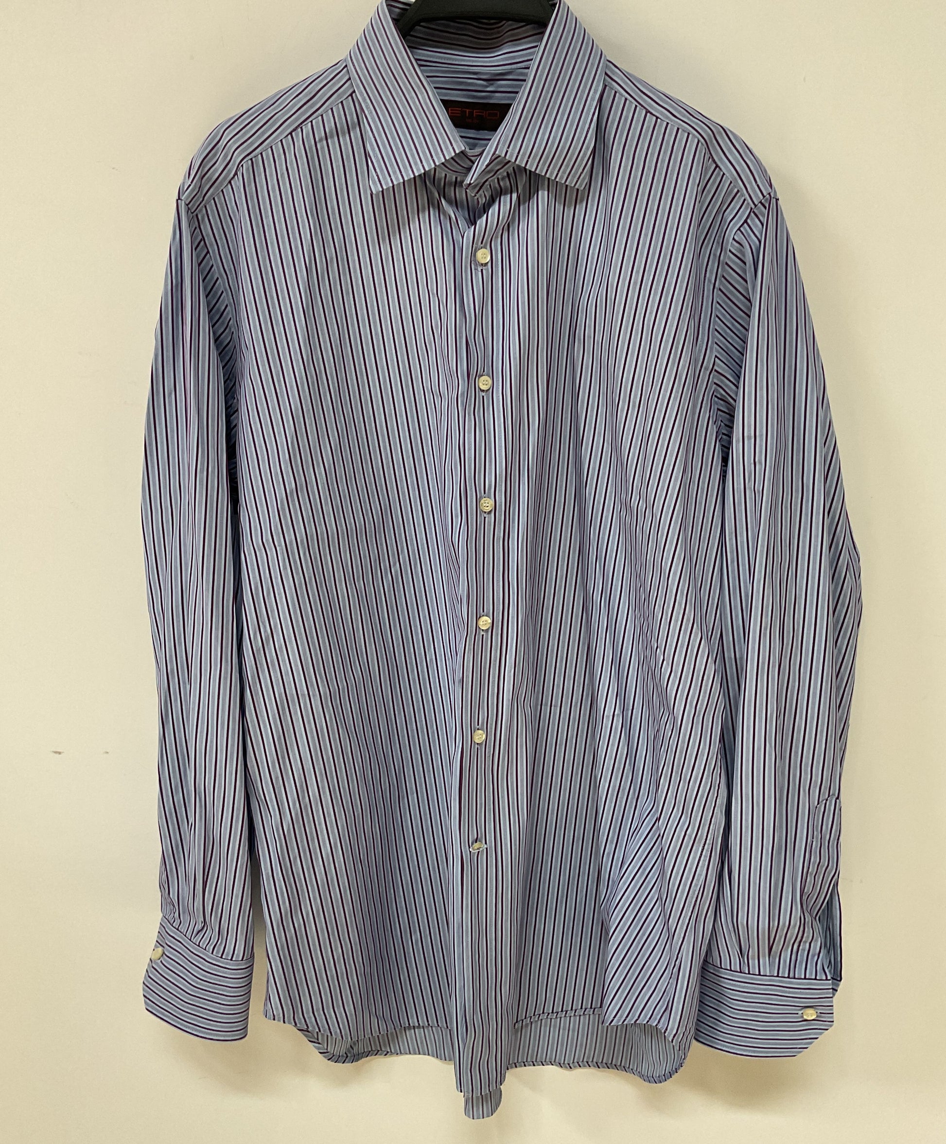 Etro Men's Blue Purple Striped Button Down Shirt Size 42 Made in Italy