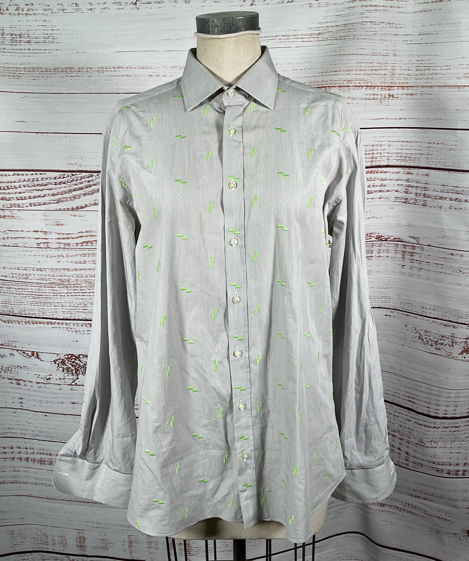 Etro Men's Long Sleeve Button Down Embroidered Shirt Gray 43