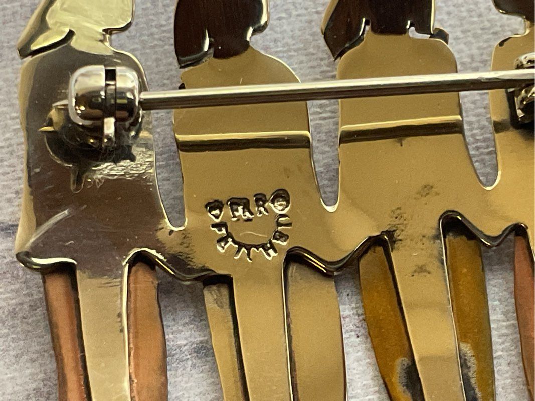 FAR FETCHED 4 Sisters Brass Brooch- 1.25"