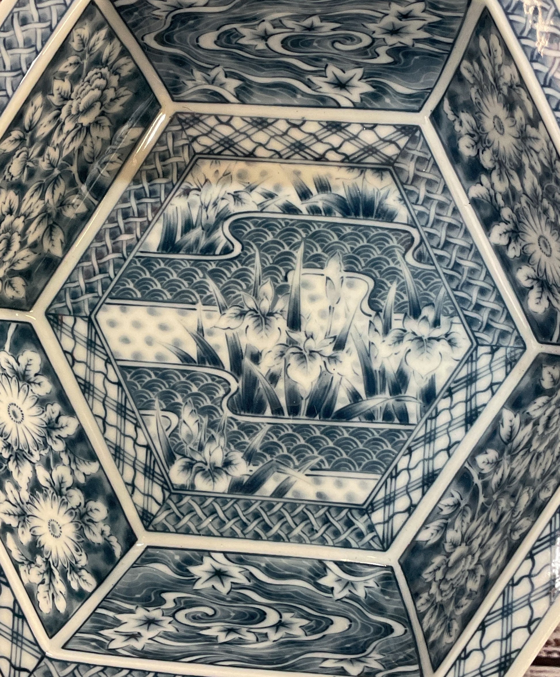 Fukagawa Japanese Chinoiserie Porcelain Macha Tea Ceremonial Bowl Blue White