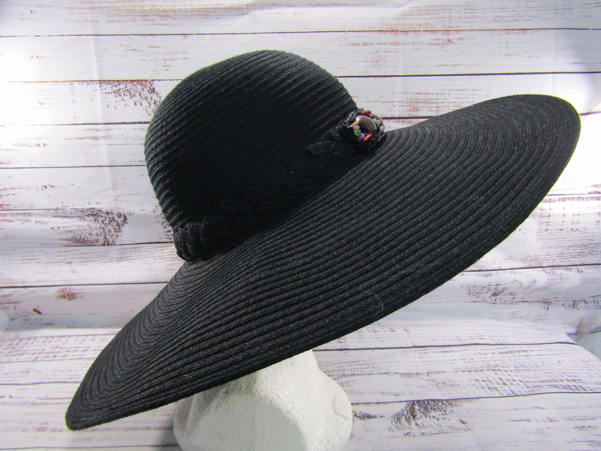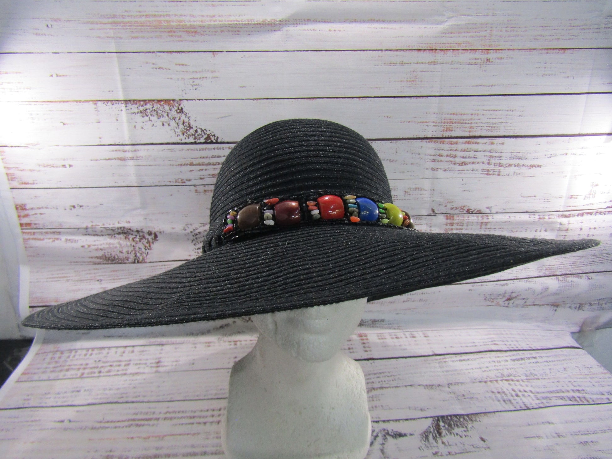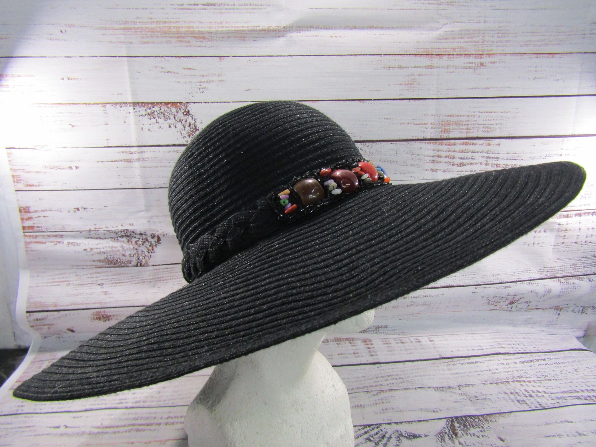 Giovannio Women's Black Wide Brim Embellished Hat Size M