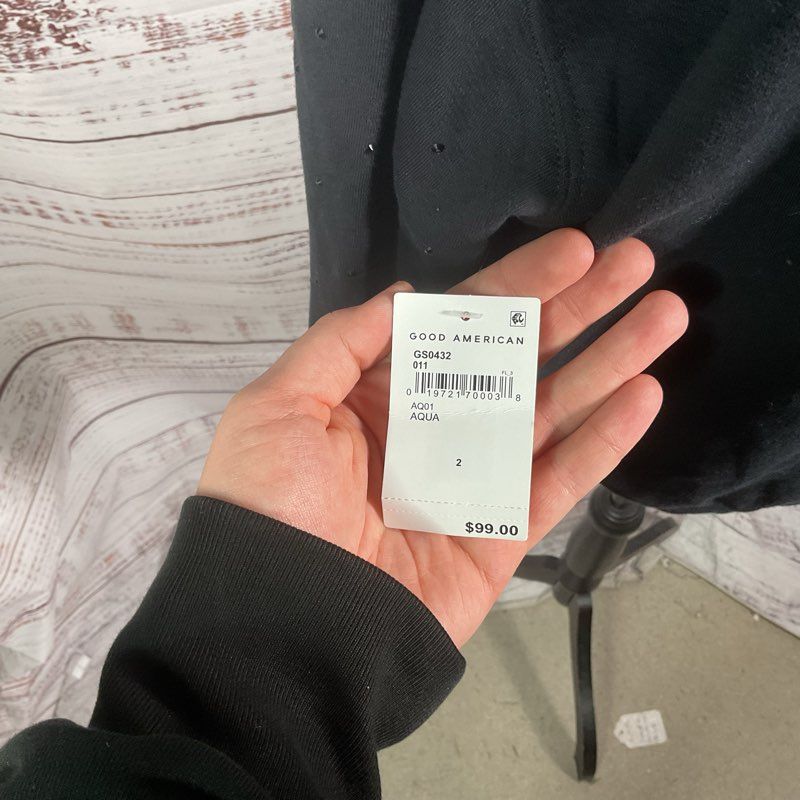 Good American Aquarius Black Sequin Astrology Horoscope Crewneck Sweater Size 2