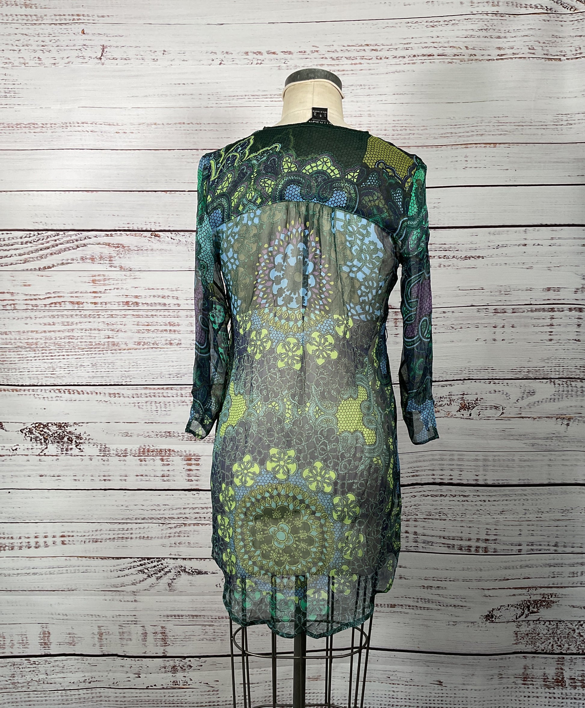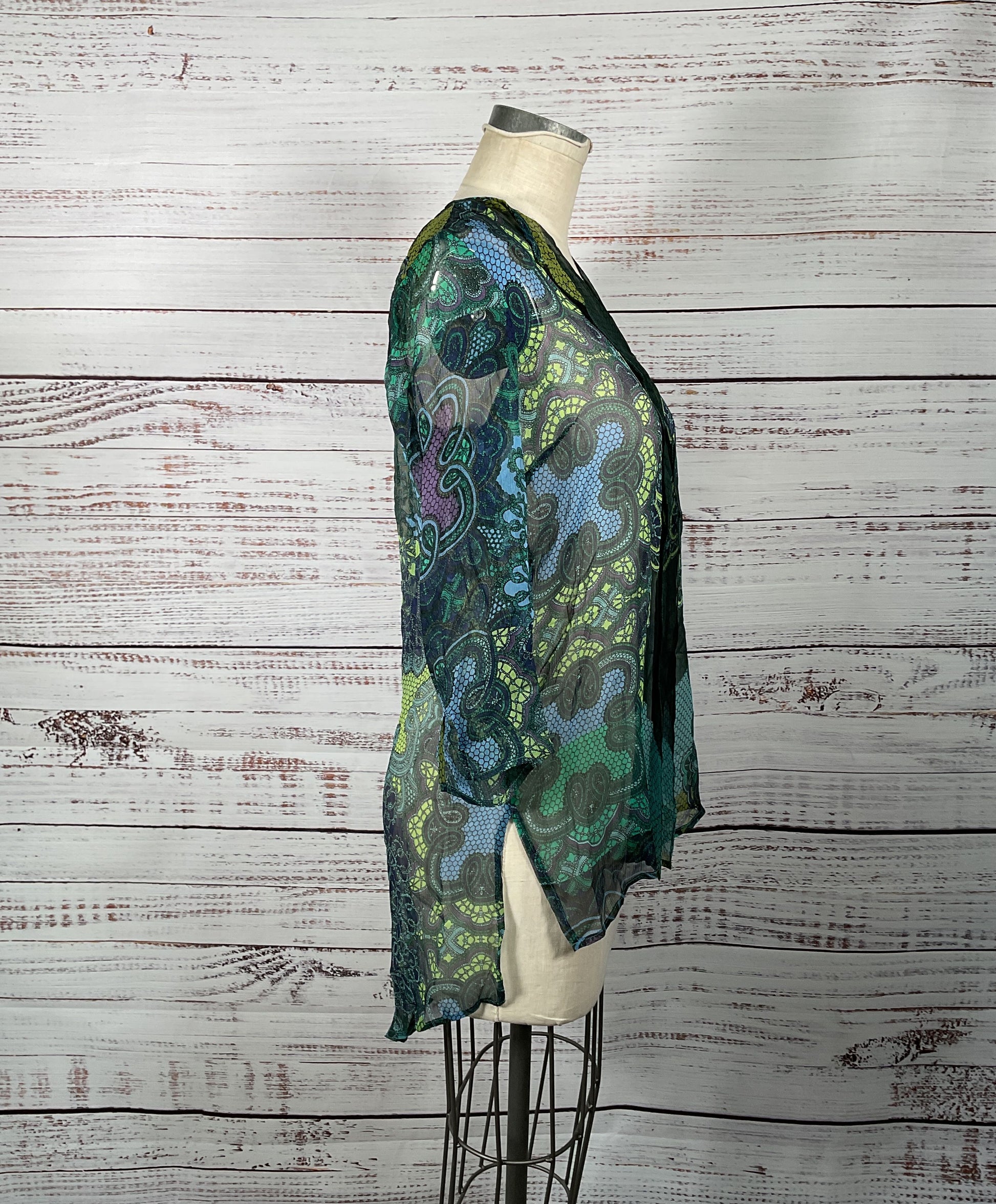 Gorgeous Citron 100% Silk Paisley Print Sheer 3/4 Sleeve Tunic - Size Small