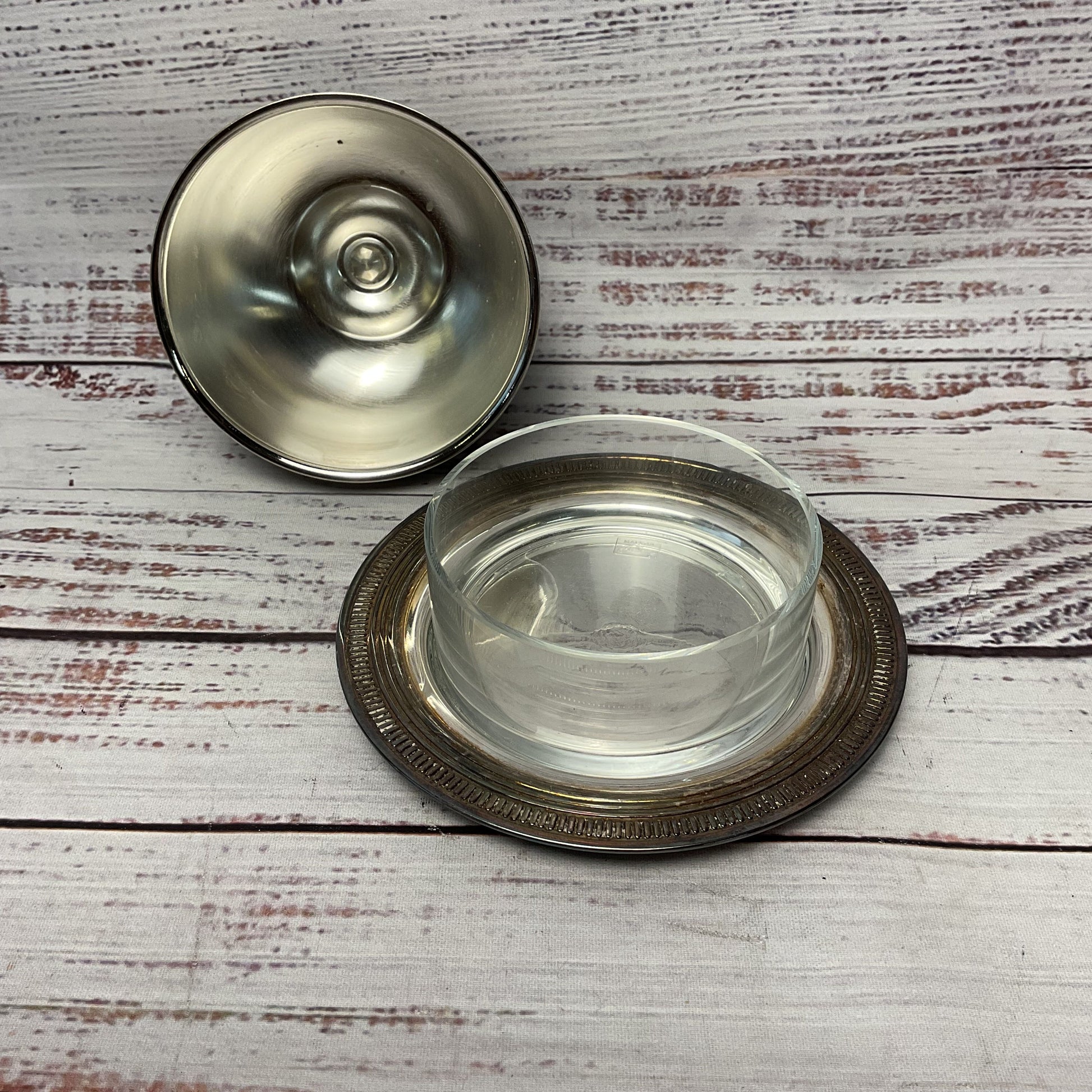 Type: Maestri Silver Platted Salt And Peppershaker + Covered Glass Butter Dish
