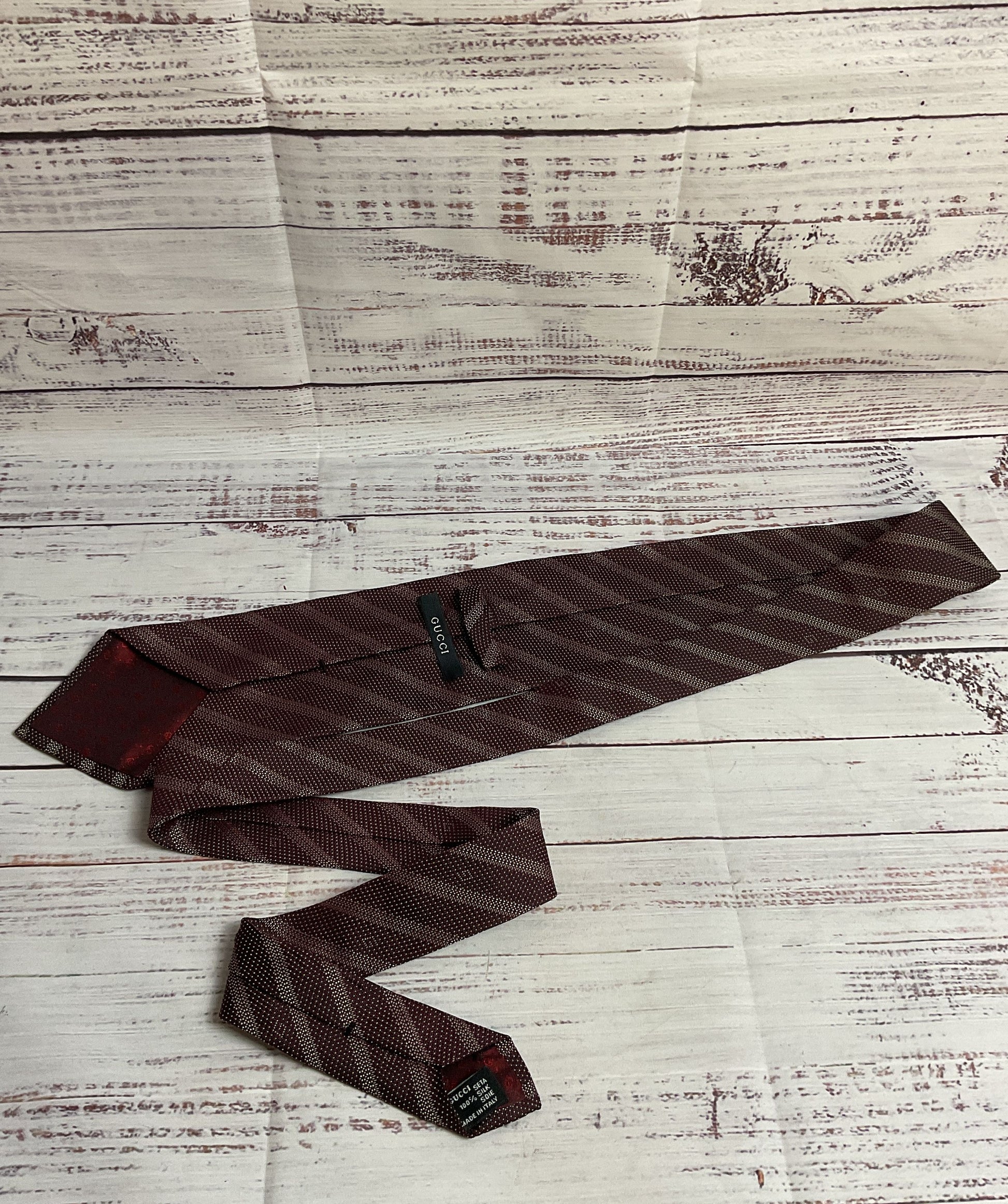 GUCCI Men's Red Striped 100% Silk Tie 57.5"