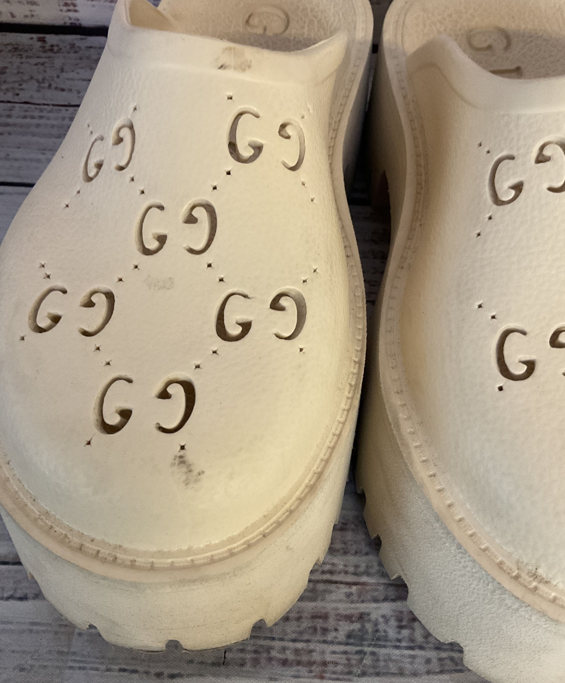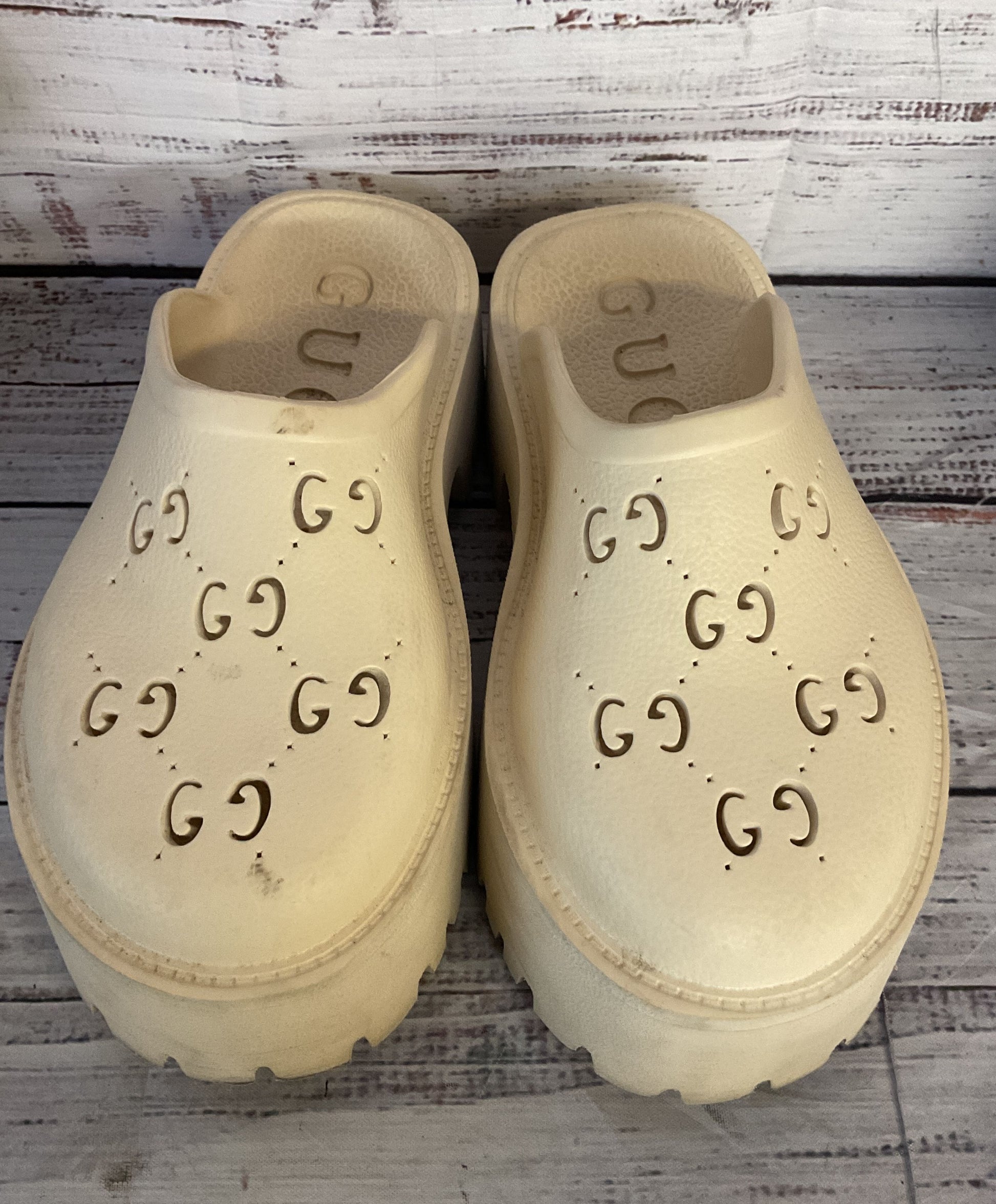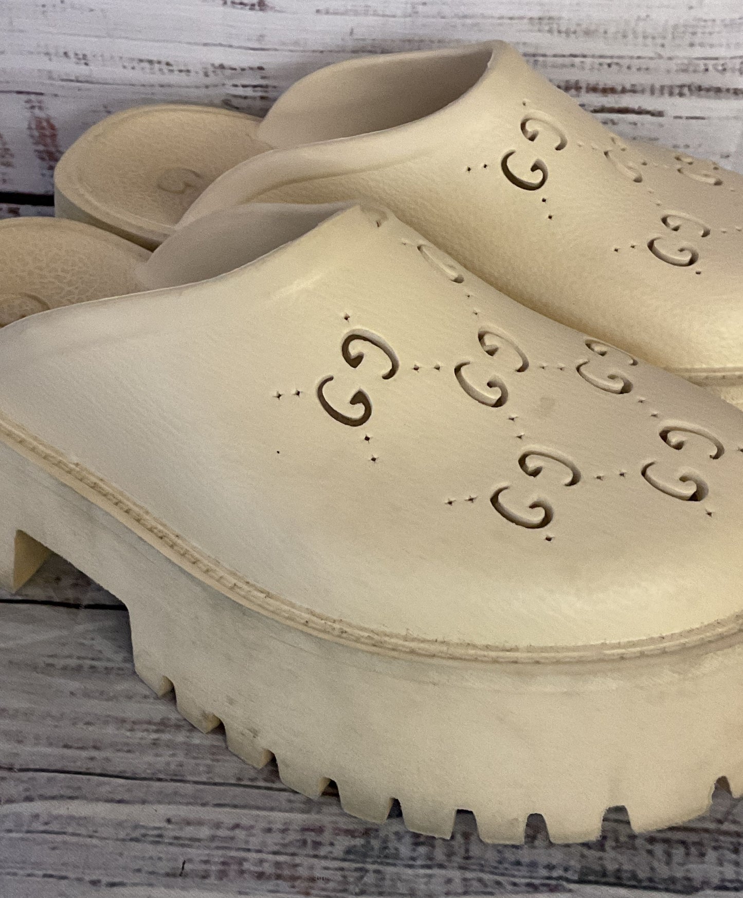Gucci Rubber Logo Platform Mule Sandals Neutral White 6
