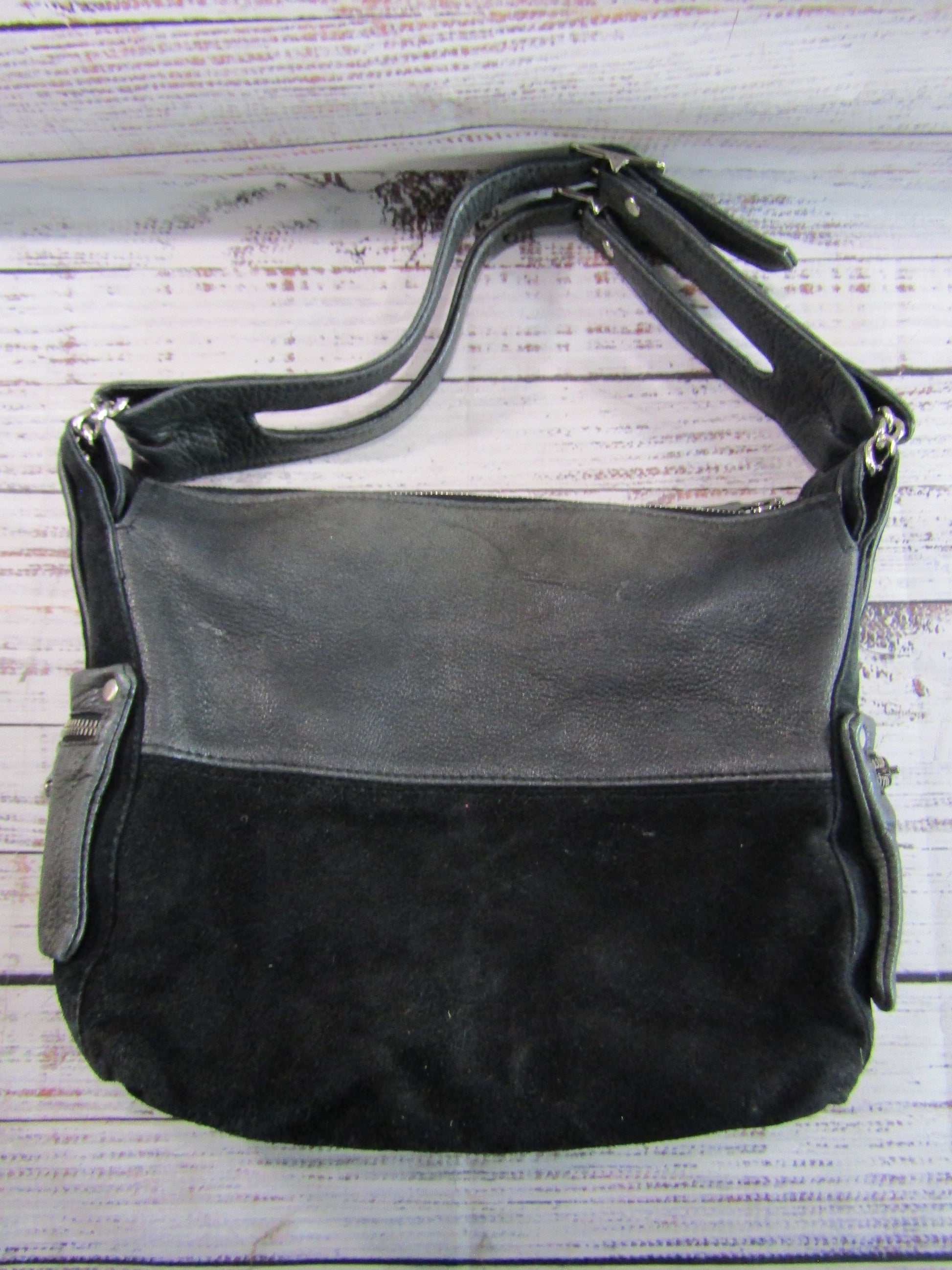 Guerin Women's Distressed Black Leather Shoulder Bag Made in Beverly Hills