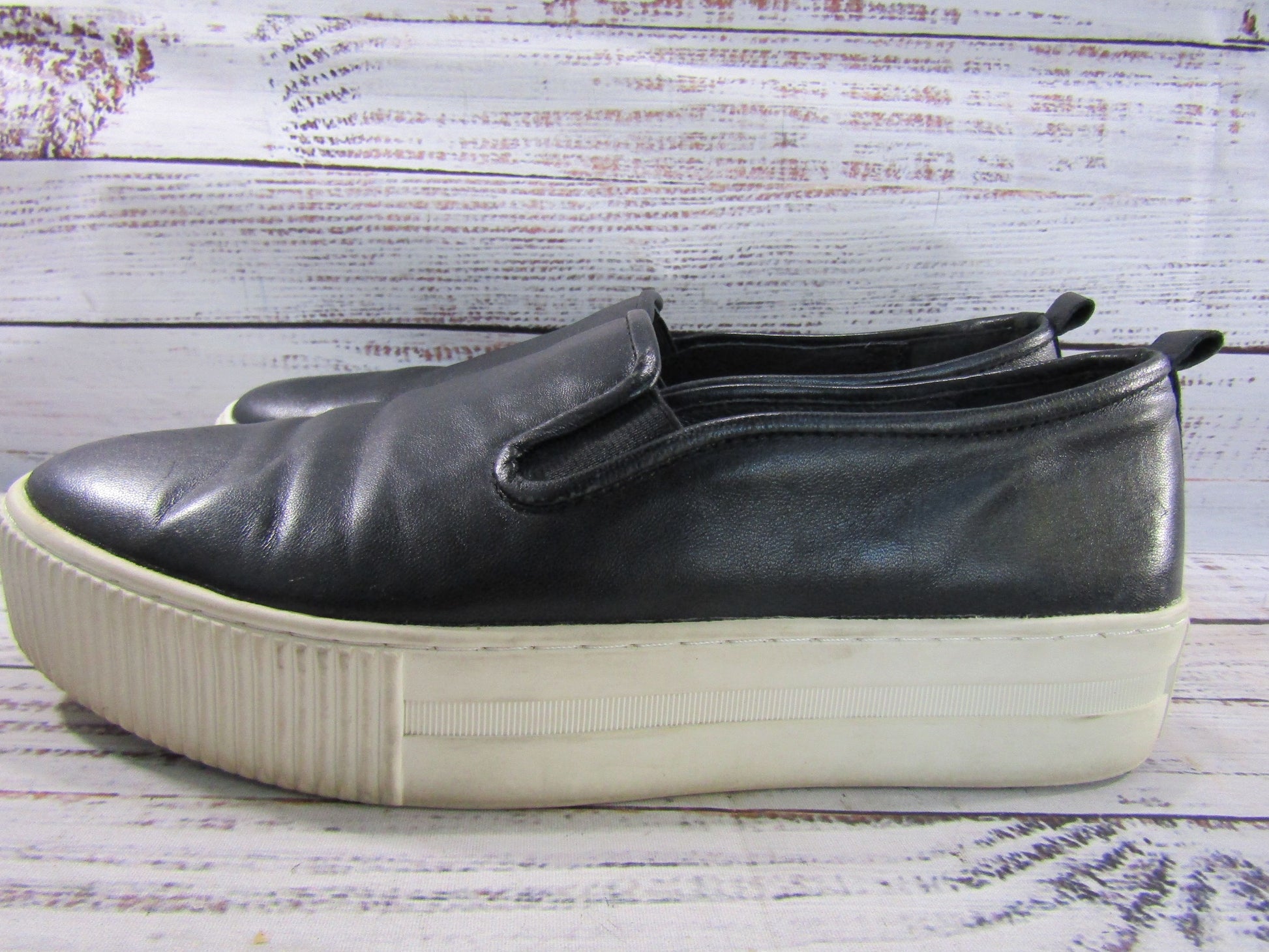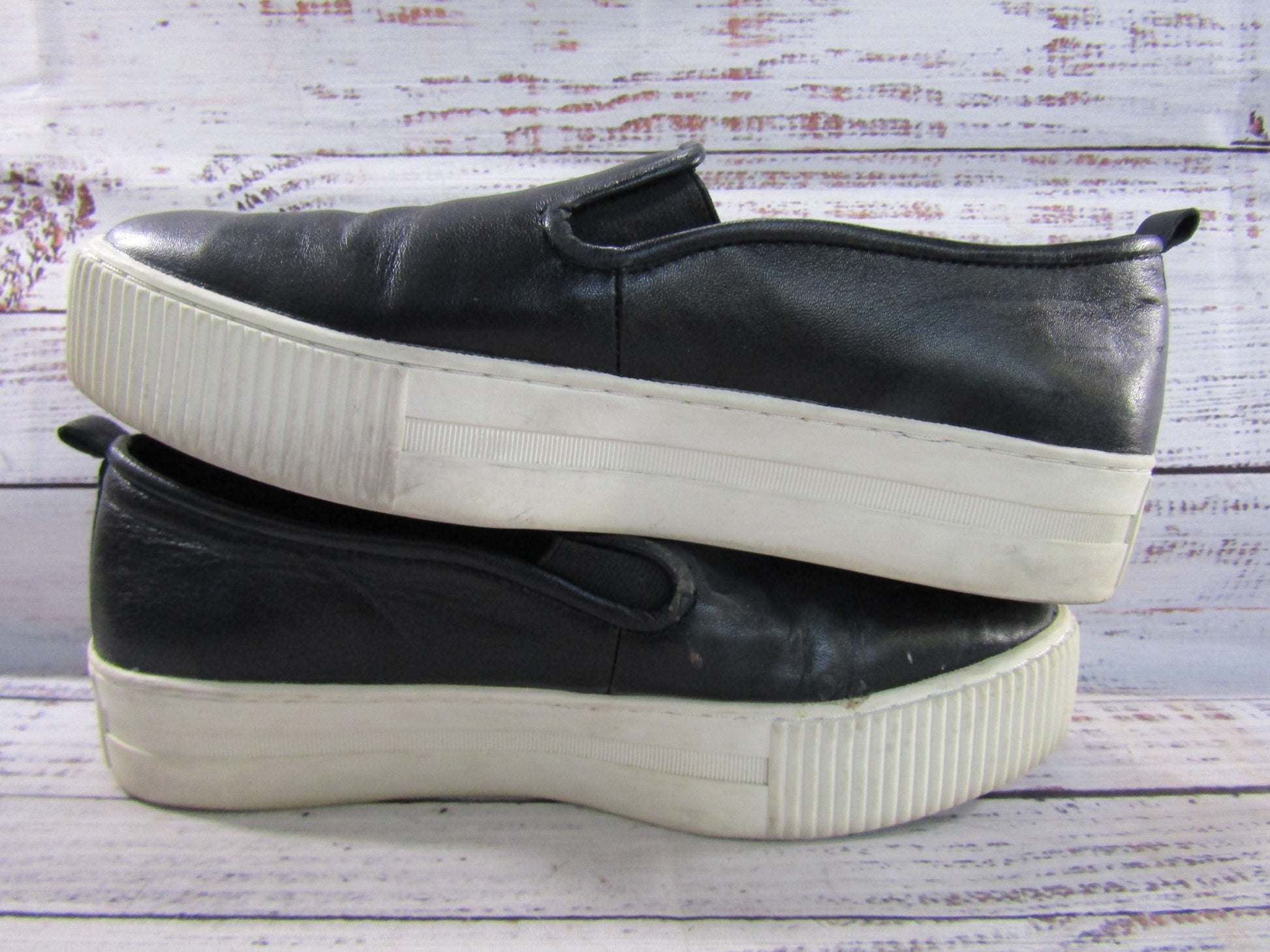 Halogen Baylee Women's Black Leather Slip-On Platform Shoes Size 8.5