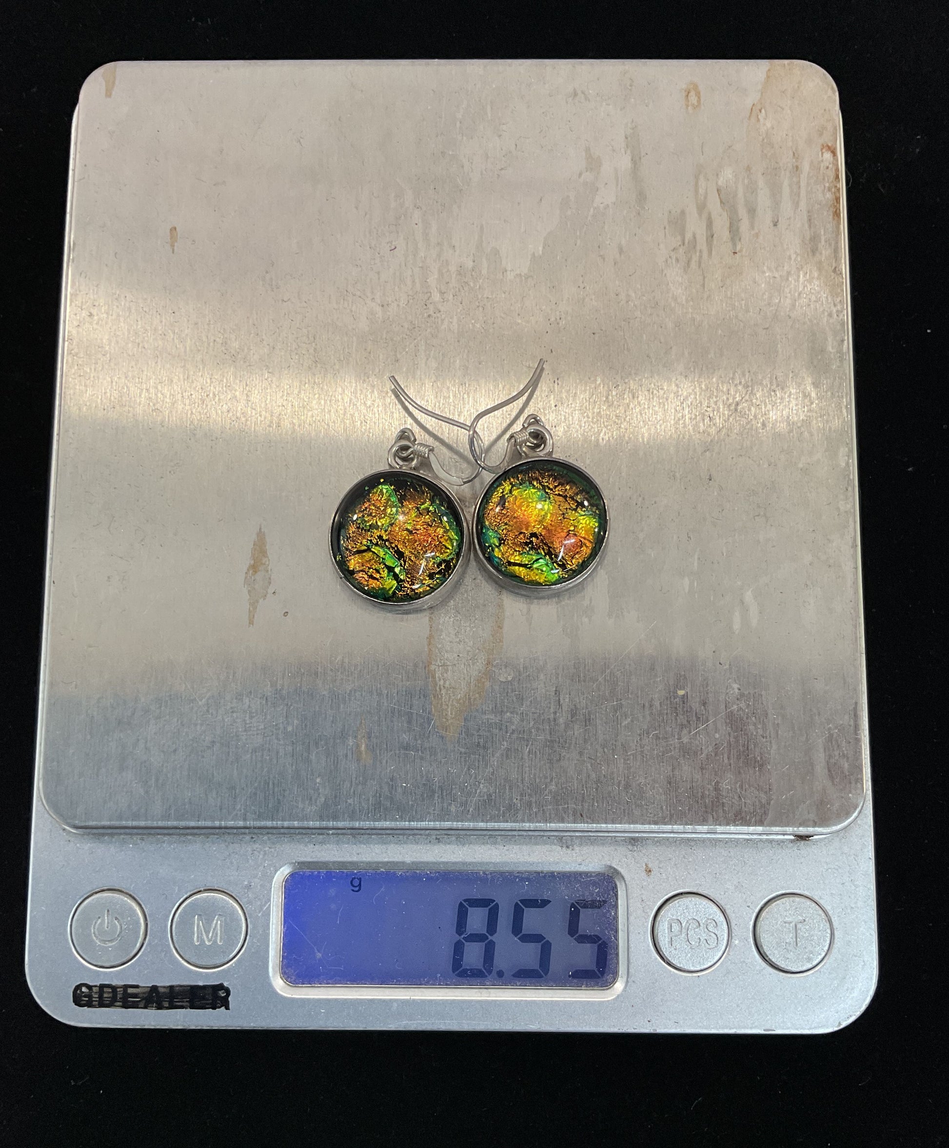 Handcrafted Sterling Silver Multi-Color Dichroic Glass Drop Dangle Earrings