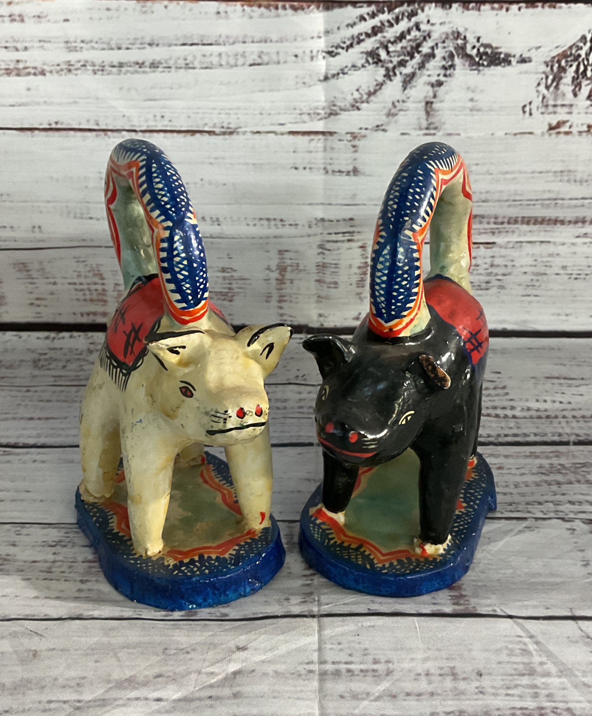 Handmade Mexico Tepetitlan Pig Figurines Multicolor